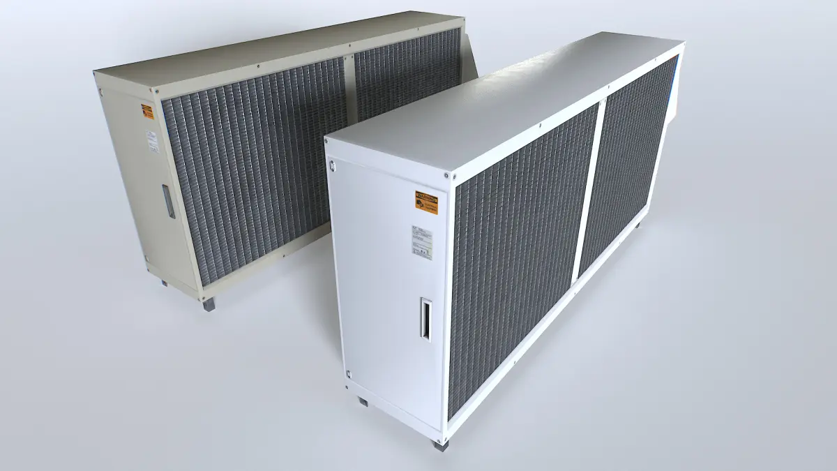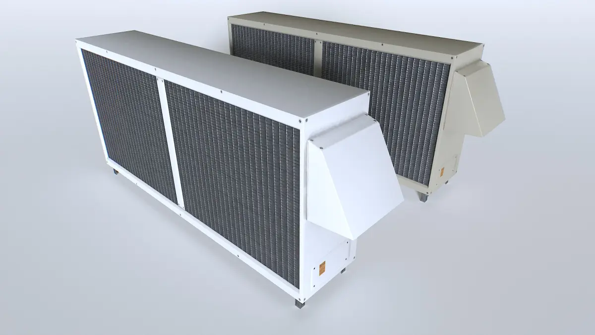 Roof AC hvac. Real scale but scale as you needs. 1 material. Comes as full mess or with separated fans in case they need to be animated. 2 sets of colors.
