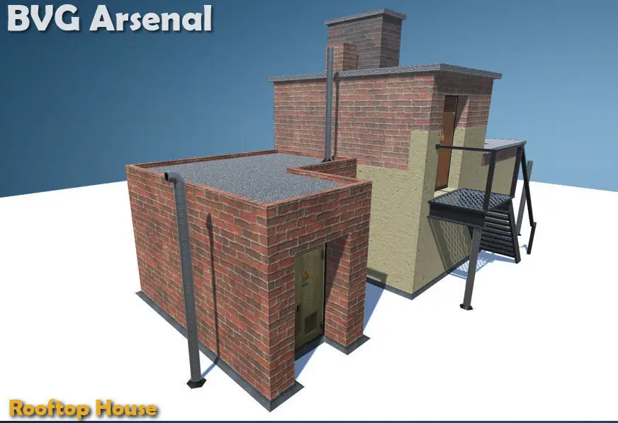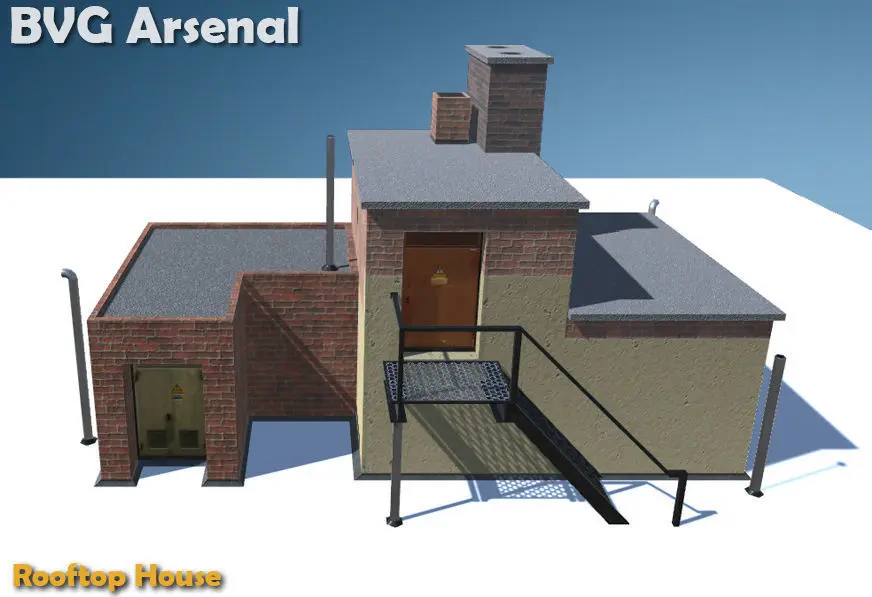 This package contains a game-ready, low-poly model of a rooftop building. Great for close up renders as well!