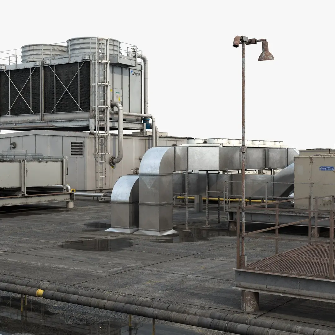 - A scene representing a rooftop with different types of Hvac units, pipes and vents, made out of 31 distinct models, with 45892 polygons in total (only quads and triangles);