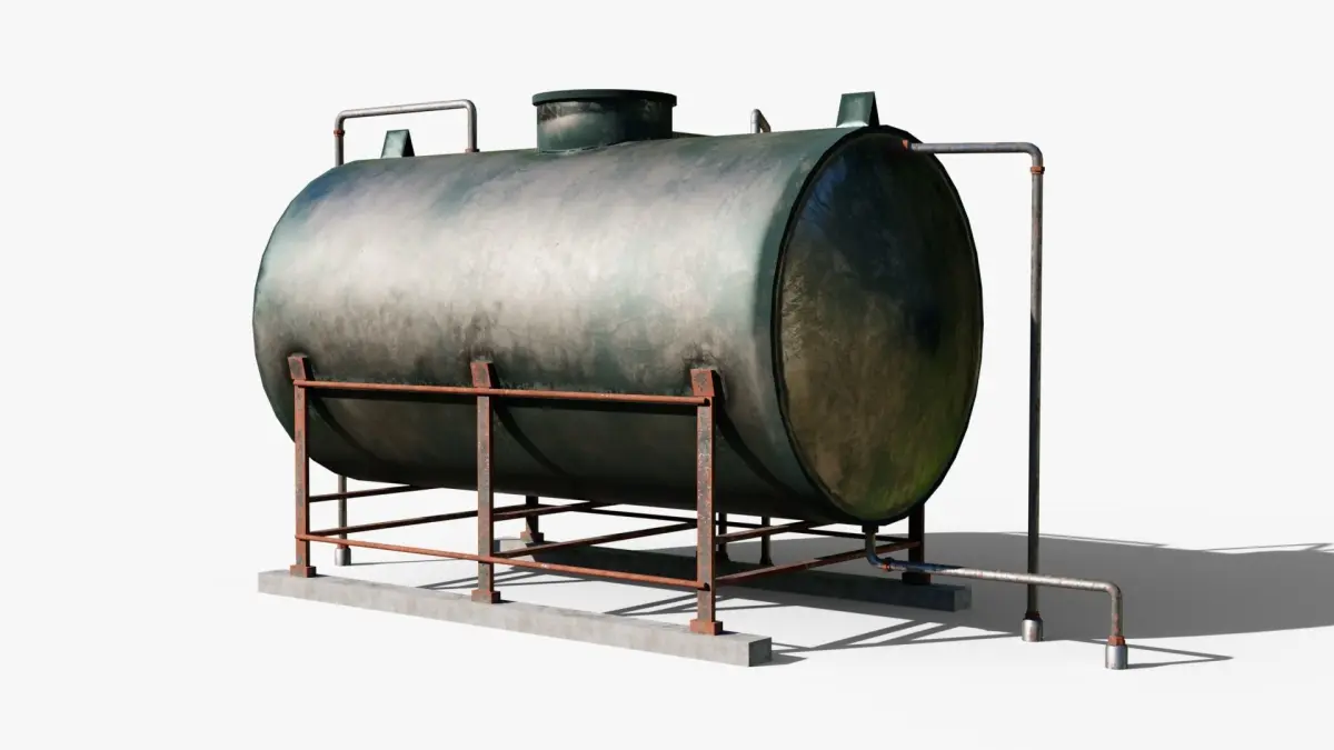 A realistic rooftop water tank with high-quality 4k resolution textures with weathering and rust finishes.