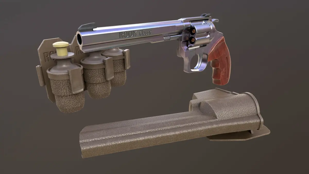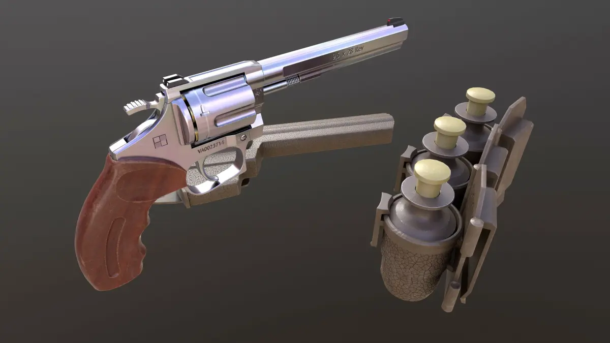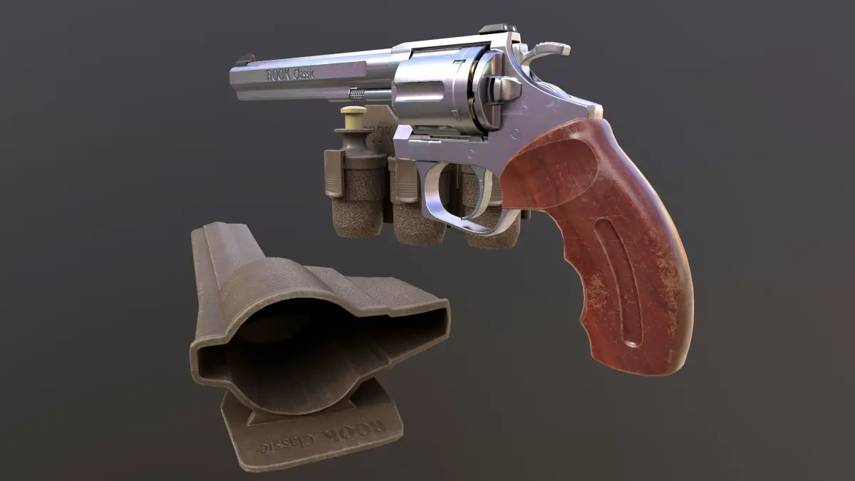 Technical specifications:The revolver model consists of 12 objects and contains 10909 points and 21814 polygons (after triangulation).The cartridge model consists of 2 objects and contains 596 points and 1184 polygons (after triangulation).The bandolier consists of 1 object and contains 1314 points and 2632 polygons (after triangulation).The speedloader consists of 3 objects and contains 2668 points and 5348 polygons (after triangulation).The revolver holster model consists of 1 object and contains 973 points and 1946 polygons (after triangulation).3D models are not triangulated. The nonplanarity of the quads does not exceed 10 degrees.Format 3D models FBX, OBJ.
