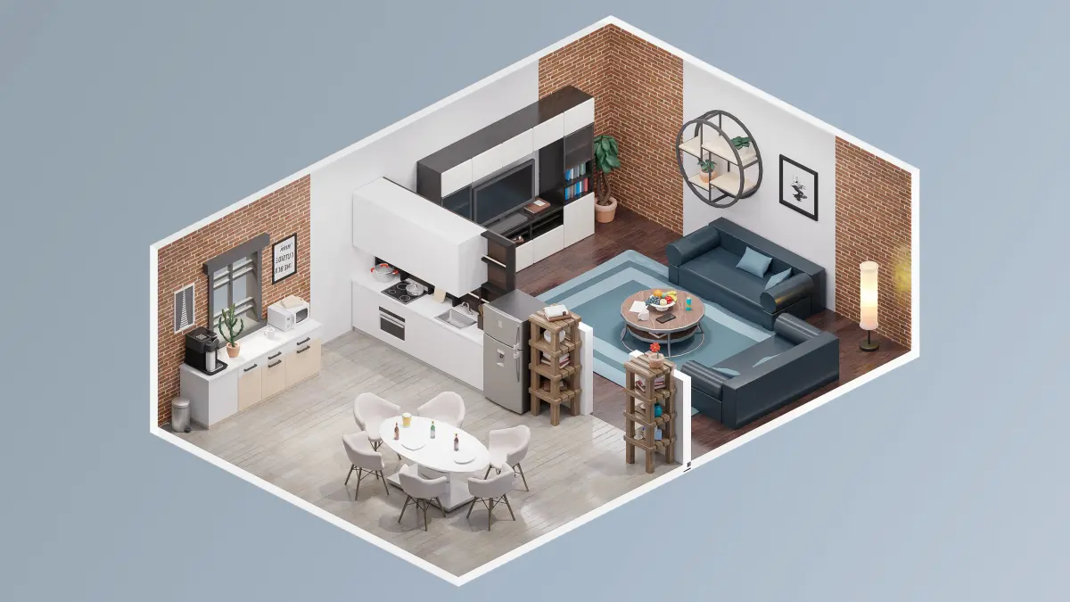 Walls, stairs, fences, sofa, chairs, bathroom assets, kitchen assets, bed, closet, clothing, table, door, props, flooring, flowers, lamp, window, pictures, etc.;