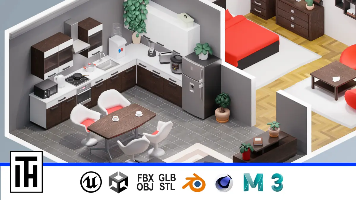 Walls, stairs, fences, sofa, chairs, bathroom assets, kitchen assets, bed, closet, clothing, table, door, props, flooring, flowers, lamp, window, pictures, etc.;