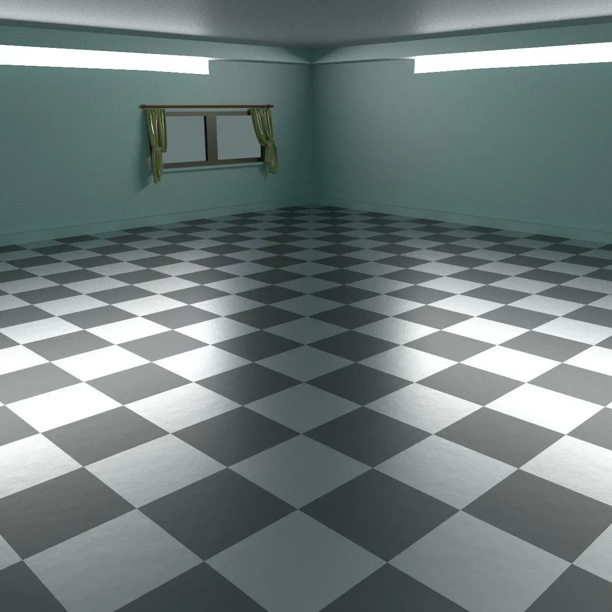 A simple home room created in blender and rendered using cycles. This room comes with a checkered floor, 2 tubelights, 3 windows and 3 curtain sets, curtain rods, door and outside light which emulates the sun. You can make any room out of it.