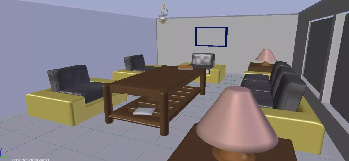 Model is ready for VR animations and can also be used in games or movies.Room interior: This model includes a set of 12 objects. They include:~A table~A photofraame~2 x Drawers with lamps kept above them~A sofa set including 1 large + 3 small sofas~A light source(mesh lighting)~2 x books kept on table~A floor~ A body of room