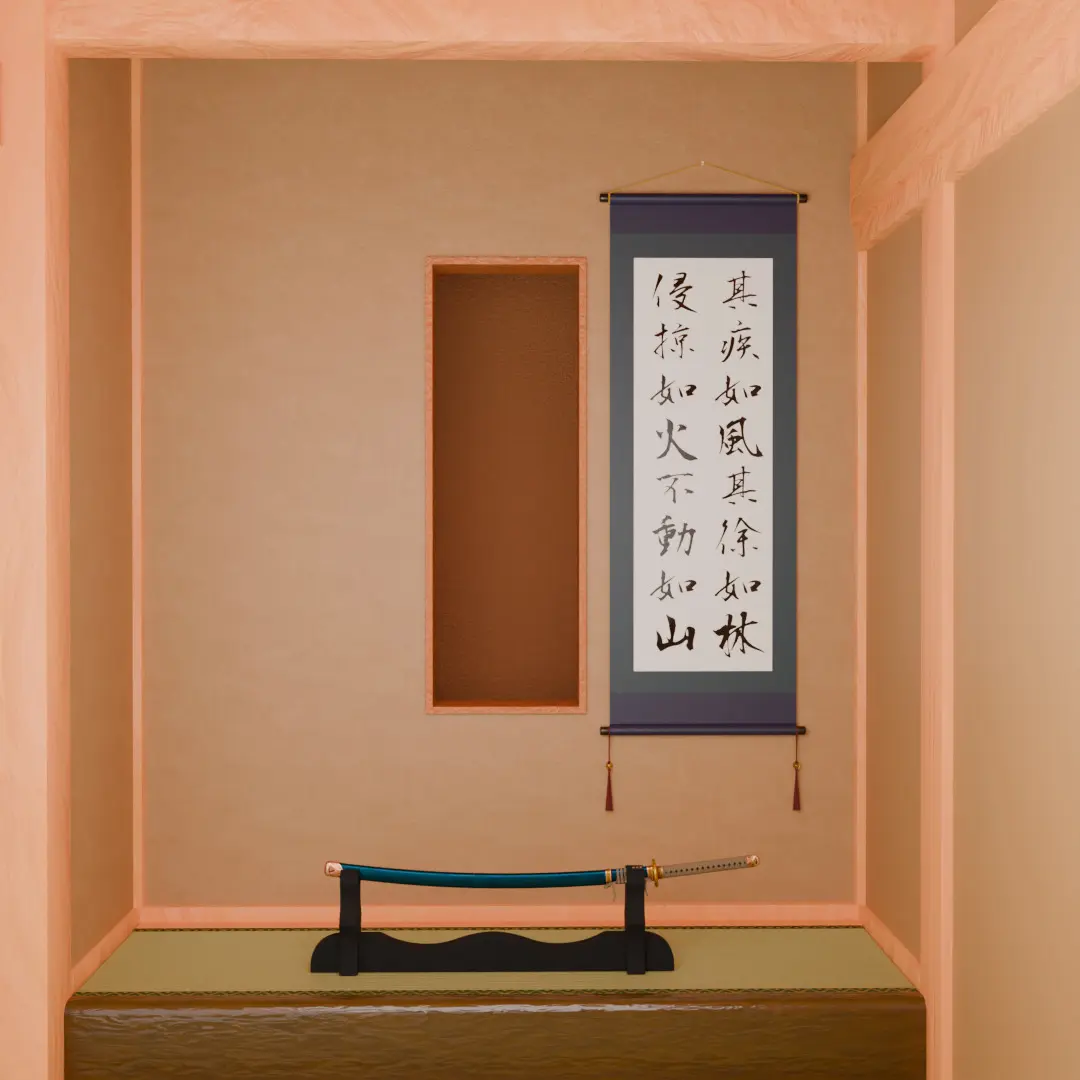 This is a 3D model of a Japanese-style room interior based on the motif of a “ninja mansion. The model reproduces the hidden structure and unique atmosphere of a tatami-mat room. The visually playful space adds thrills and depth to the world of the work.