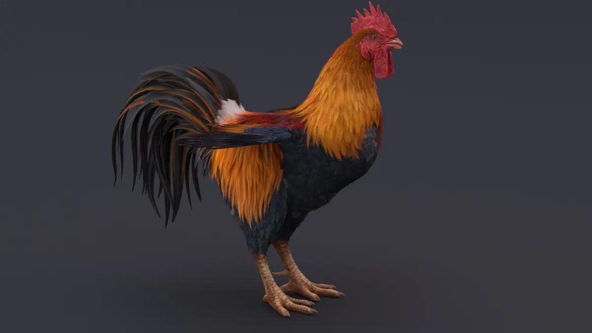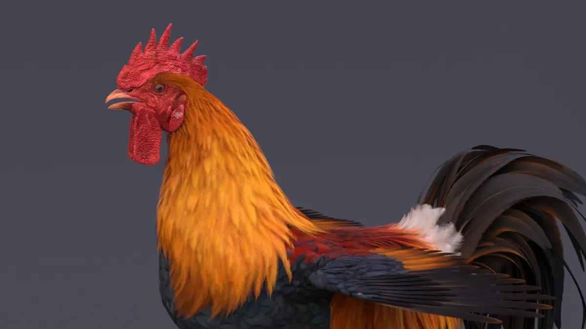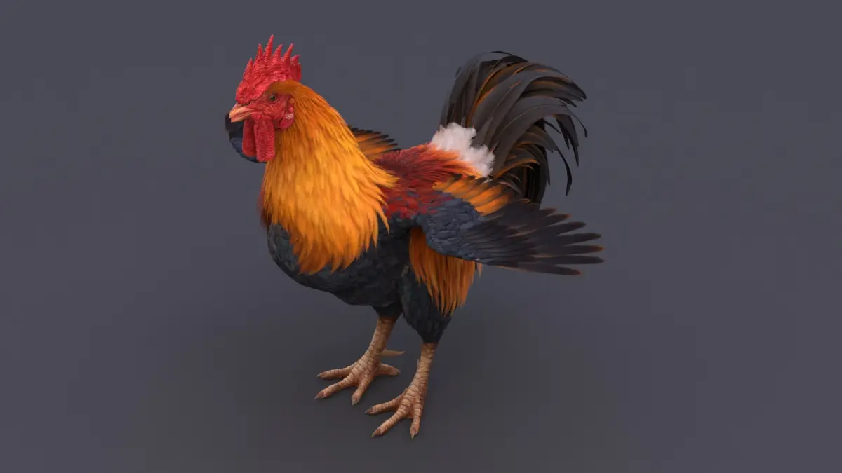 High-quality realistic Rooster model with feathers, it has Vray materials with high-resolution textures. The Rooster model has clean topology and looks good without any iteration of smoothing.