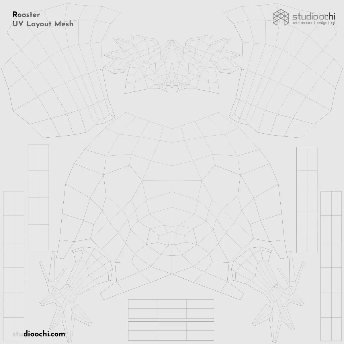 - Rest pose included, completely symmetrical and ready to rig.