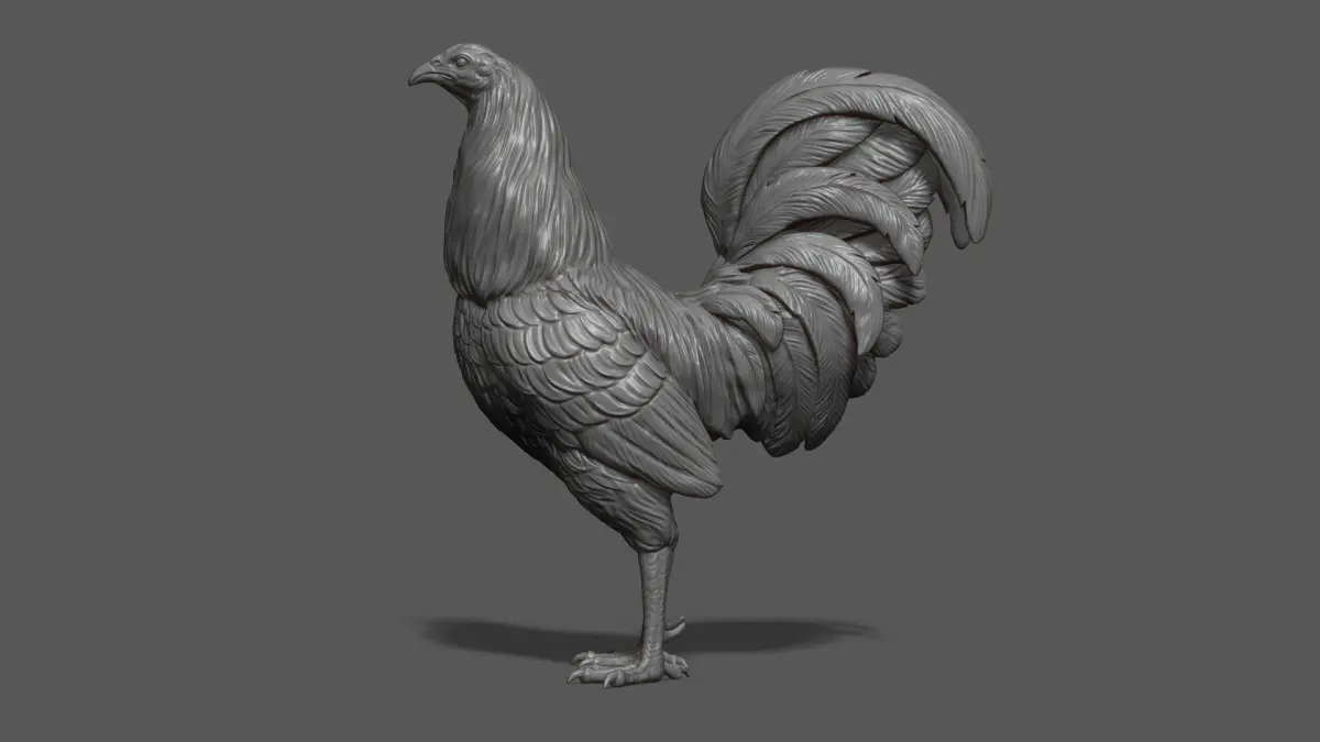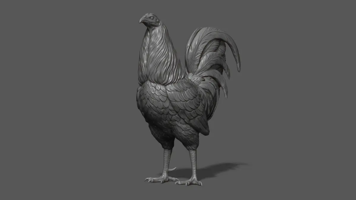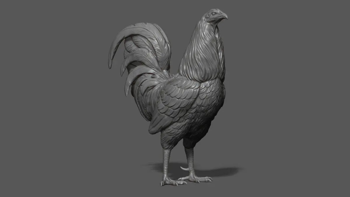 800K STL, OBJ triangulated mesh, Rooster fighting