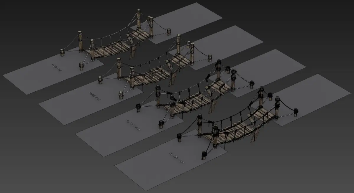 Low poly and High Poly Rope BridgeThe source is FBX file and compatible with popular 3d software.