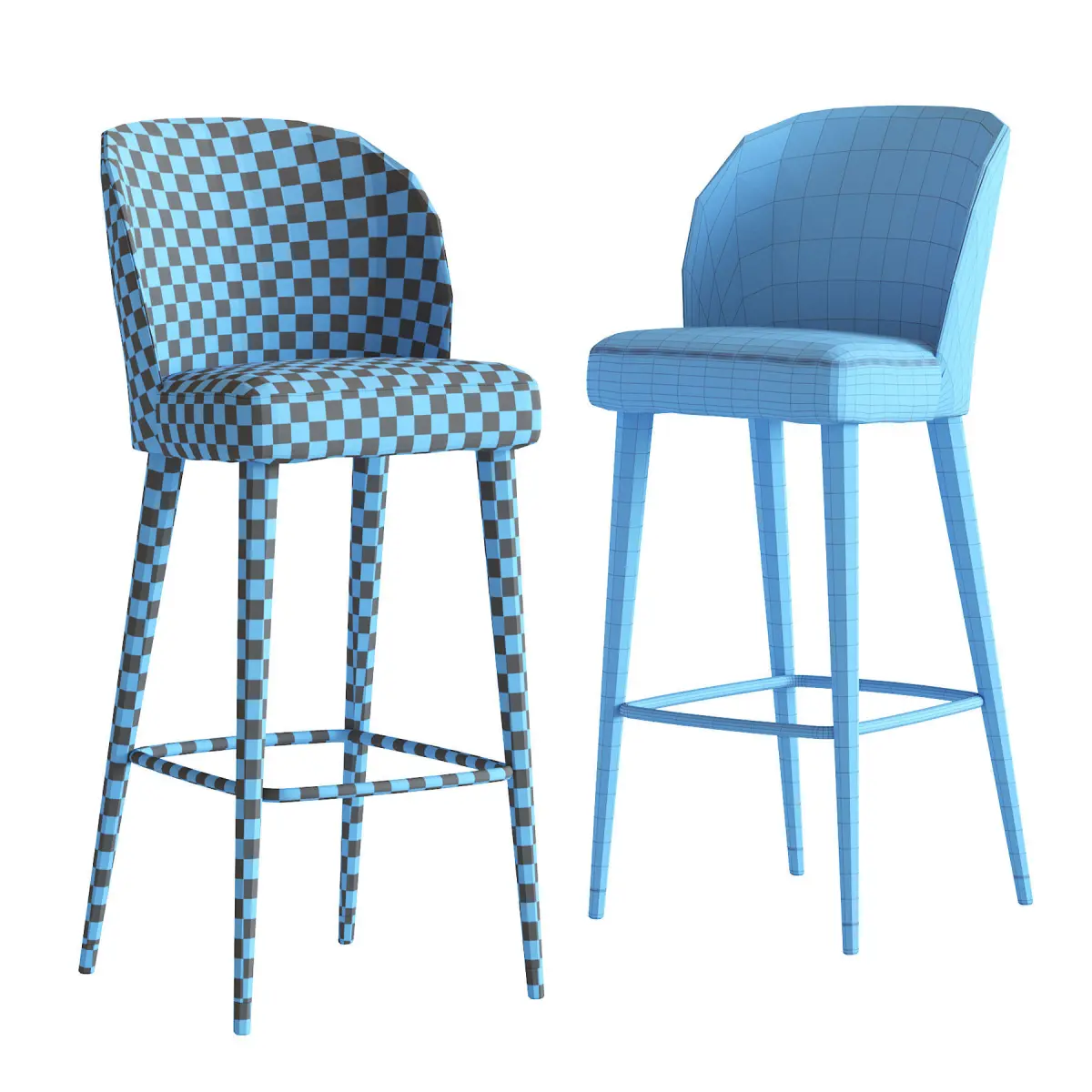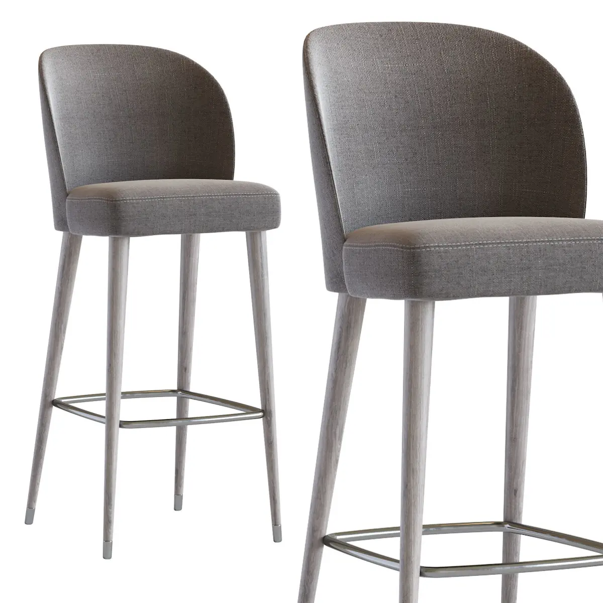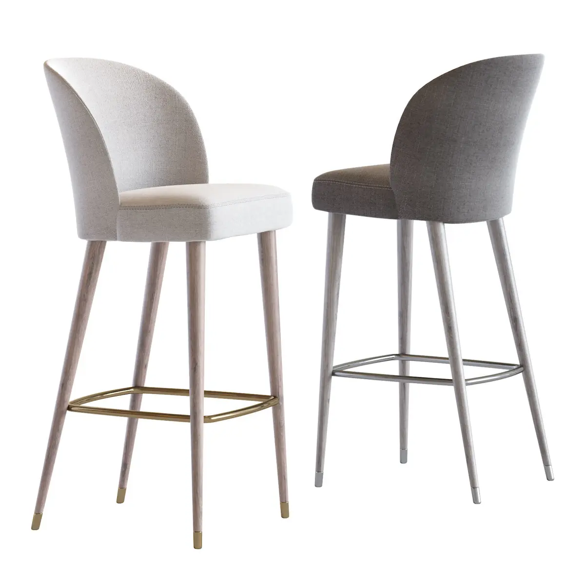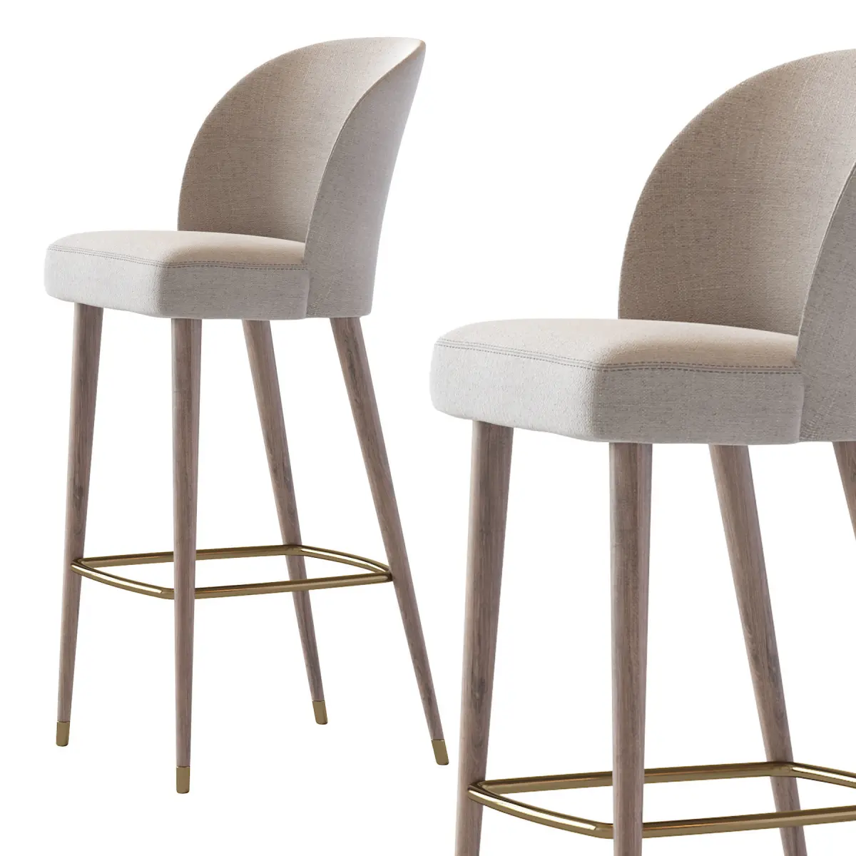 Barstool, molded foam shell. Webbed seat and upholstered onto the frame. Solid Beech and Ash wood. With 4 solid wooden turned legs and chrome footring.