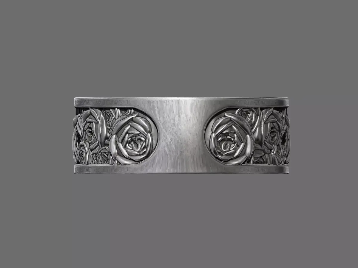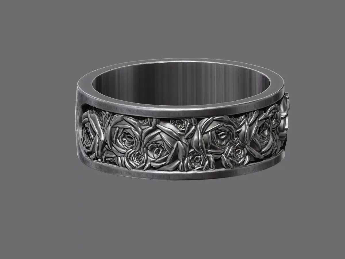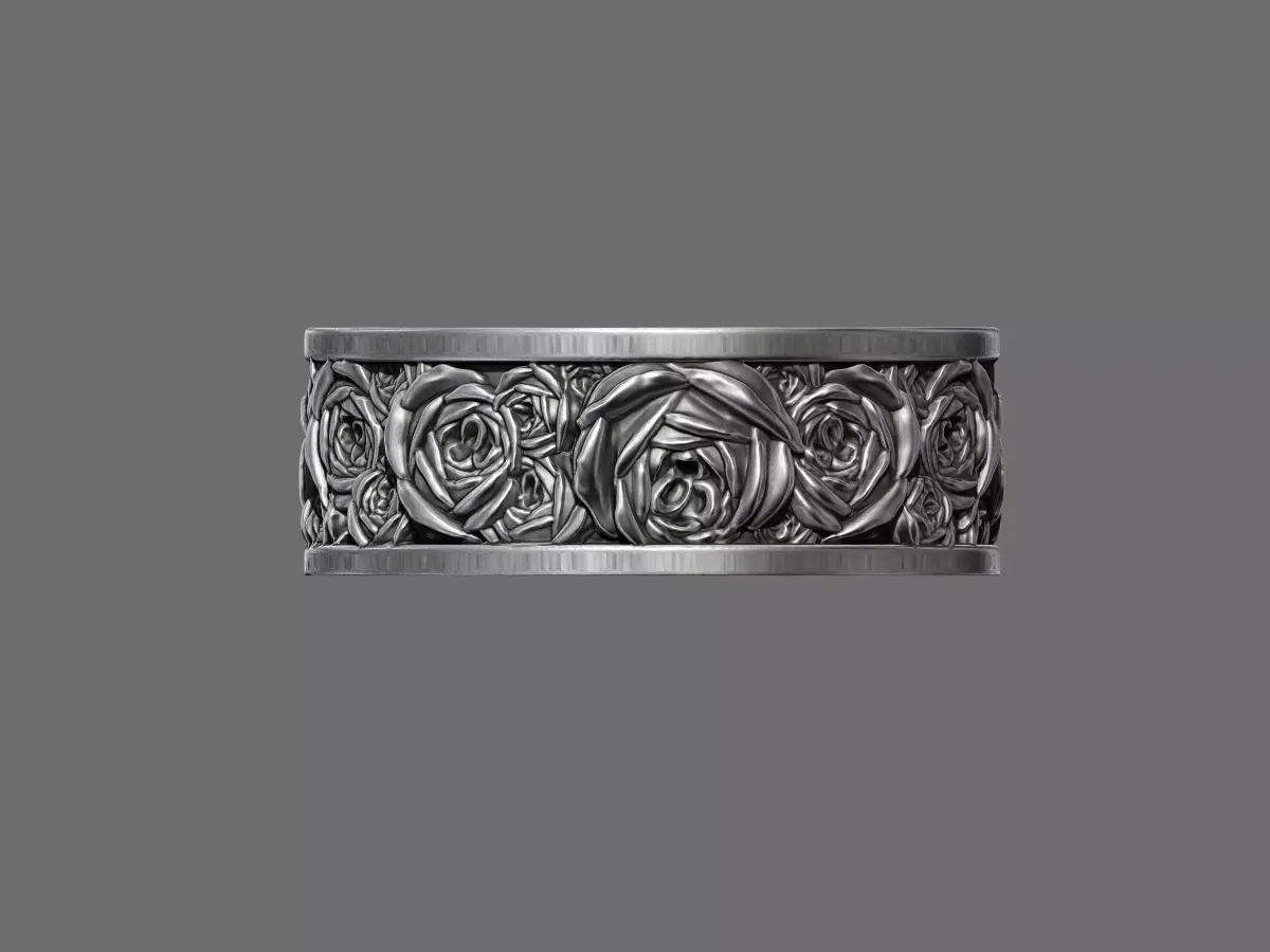 A romantic wedding band featuring an elegant rose flower pattern engraved continuously around the ring. Symbolising love, passion, and timeless beauty, the floral detailing creates a classic yet refined design. Crafted for high-quality 3D printing and suitable for metal casting, this ring is ideal for wedding bands, promise rings, or bespoke floral jewellery projects.