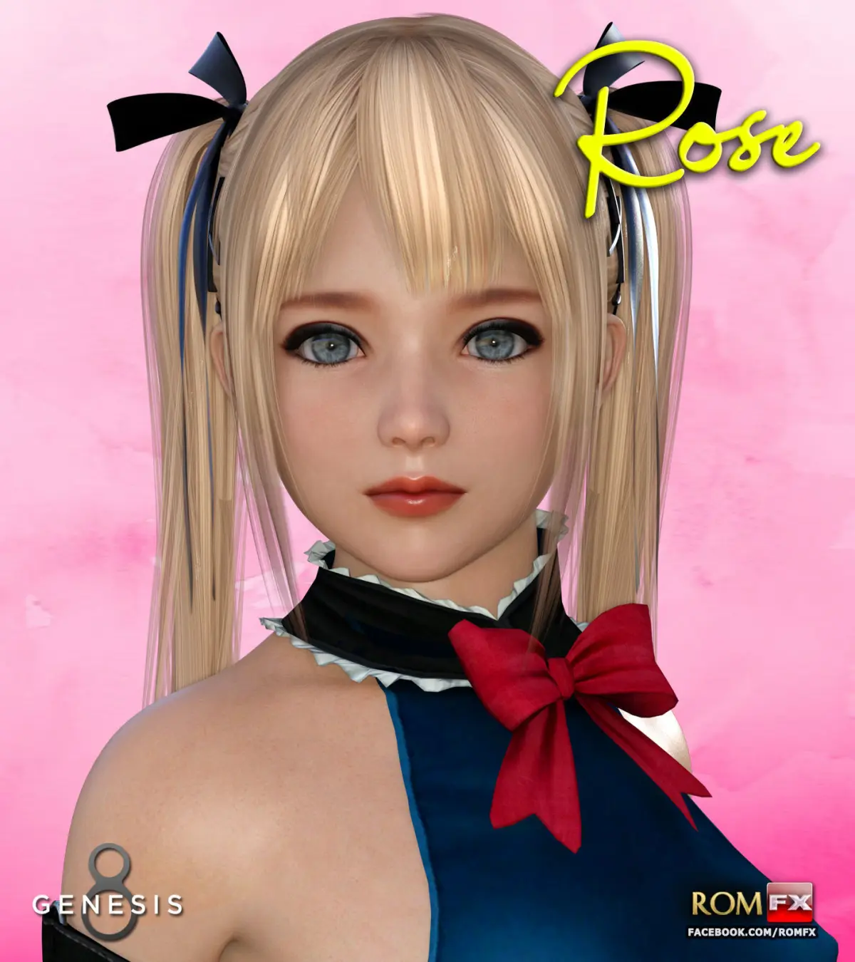 Rose is a beautiful and adorable 19 year old girl, always excited she is always looking for new adventures and challenges. Despite her young age and apparent fragility, Rose loves fights, and trains daily. Rose is a cute character that will renew and bring a new happy life to your DAZ collection!