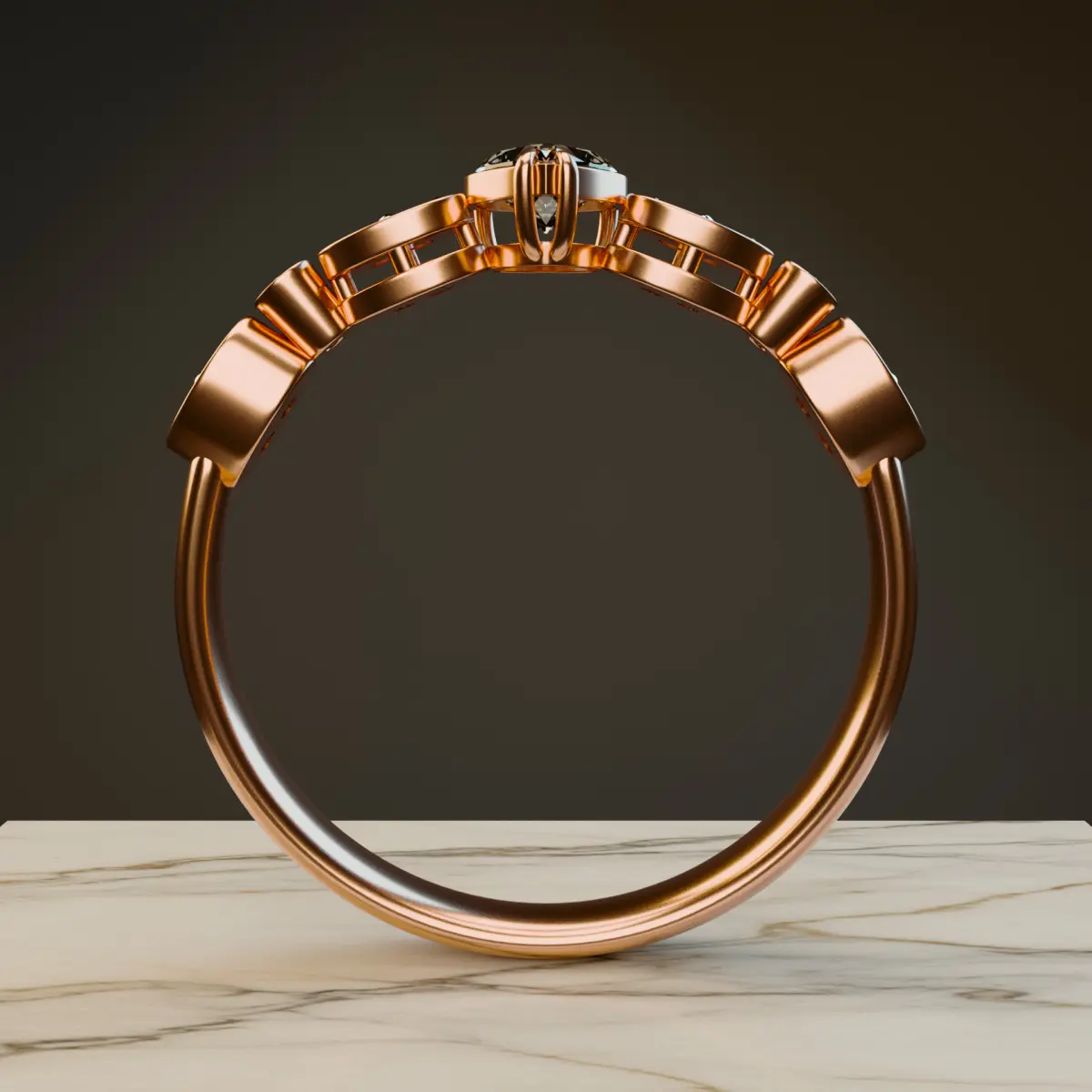 This is a highly detailed 3D model of an elegant rose gold ring, designed for use in product visualization, jewelry design, rendering, animation, and virtual prototyping.