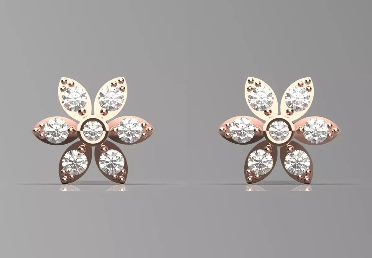 Rose Gold Diamond Flower Stud Earrings Model JE0117