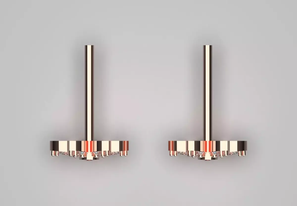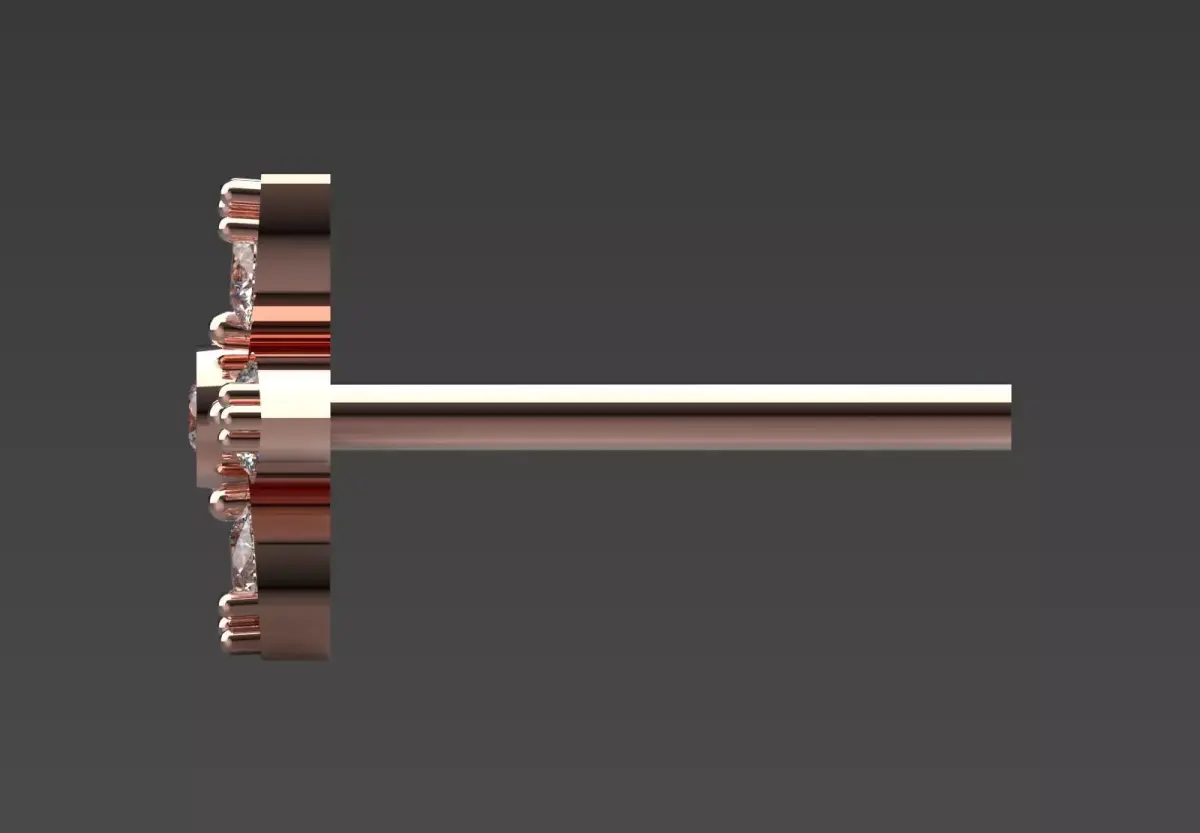 In the design of these earrings, each of its six petals consists of a Marquise cut diamond that is beautifully and delicately placed together. In the center of this flower, a Round Brilliant Diamond shines, which is the beating heart of this piece of art. These diamonds are held in place using delicate and strong prongs so that light reaches them from all directions and they have a dazzling and uninterrupted shine.