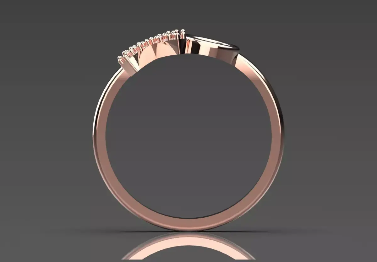 Technically, this ring is made with utmost care and elegance from rose gold with a polished and mirror finish. In its central part, an artistic pattern in the shape of an X or cross is decorated with rows of small and sparkling diamonds. This design is combined with a smooth and shiny gold ring on the other side of the ring, creating a beautiful and attractive contrast. Precisely cut diamonds are set on the surface to provide a dazzling sparkle, transforming this ring into a wearable work of art.