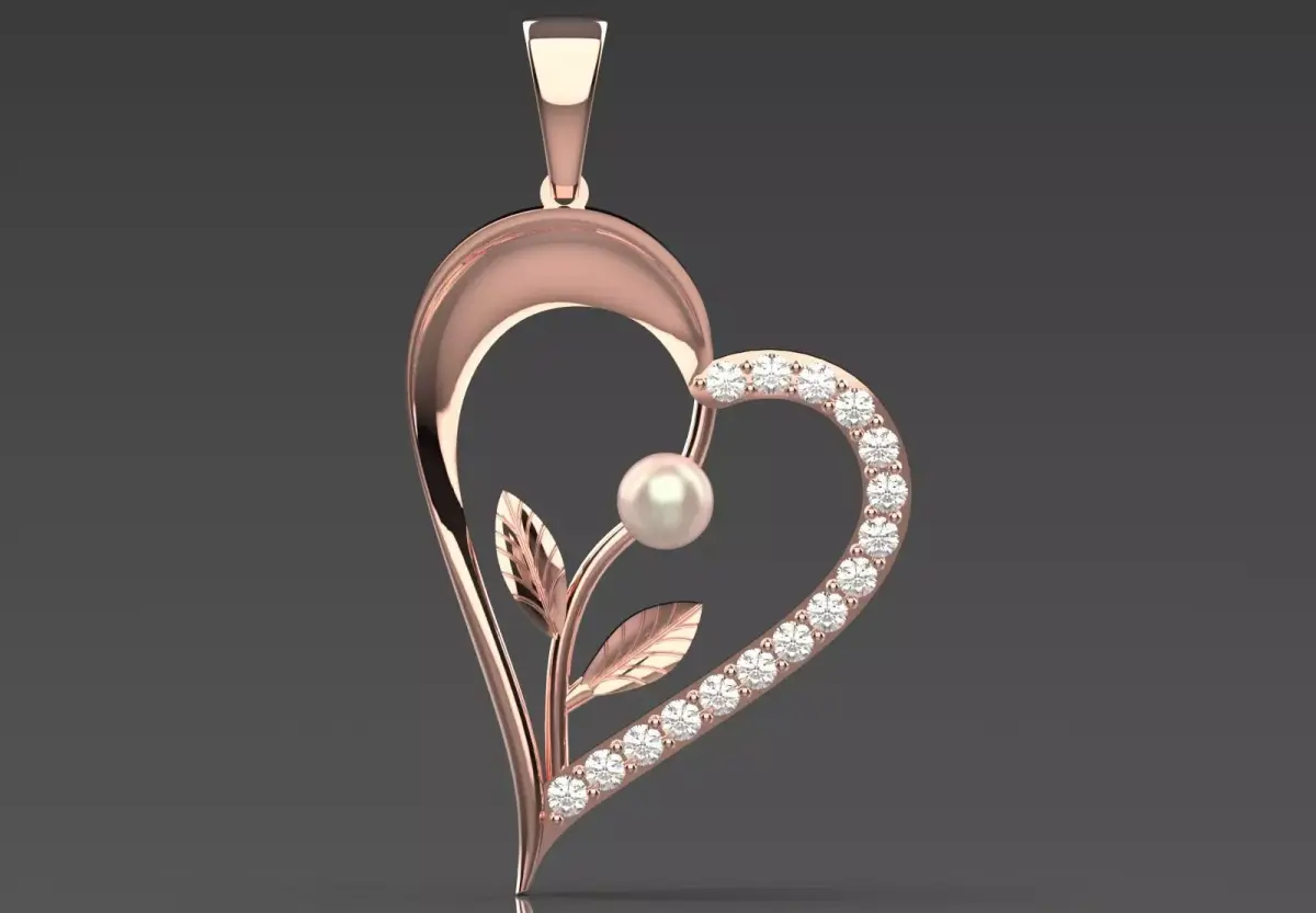 Rose Gold Heart Pendant with Diamonds and Pearls Model PP0059- The PP0059 pendant is the embodiment of love and elegance. This beautiful piece, with its creative design, combines the classic heart shape with the artistic details of a flower. The eye-catching harmony between the sparkle of diamonds, the softness of pearls and the warmth of rose gold, turns this pendant into a wearable work of art.- Technically, this pendant is made of