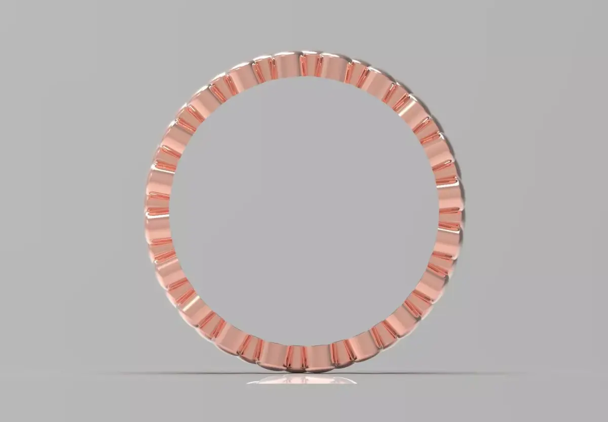 The technical design of this ring consists of two rows of small, domed elements that alternate in a checkerboard pattern, covering the entire surface of the ring. Each of these domes is polished with extreme precision to reflect light in different ways, giving the ring a three-dimensional and dynamic effect. This unique texture creates an attractive contrast with the smooth inner surface of the ring, providing you with maximum comfort.