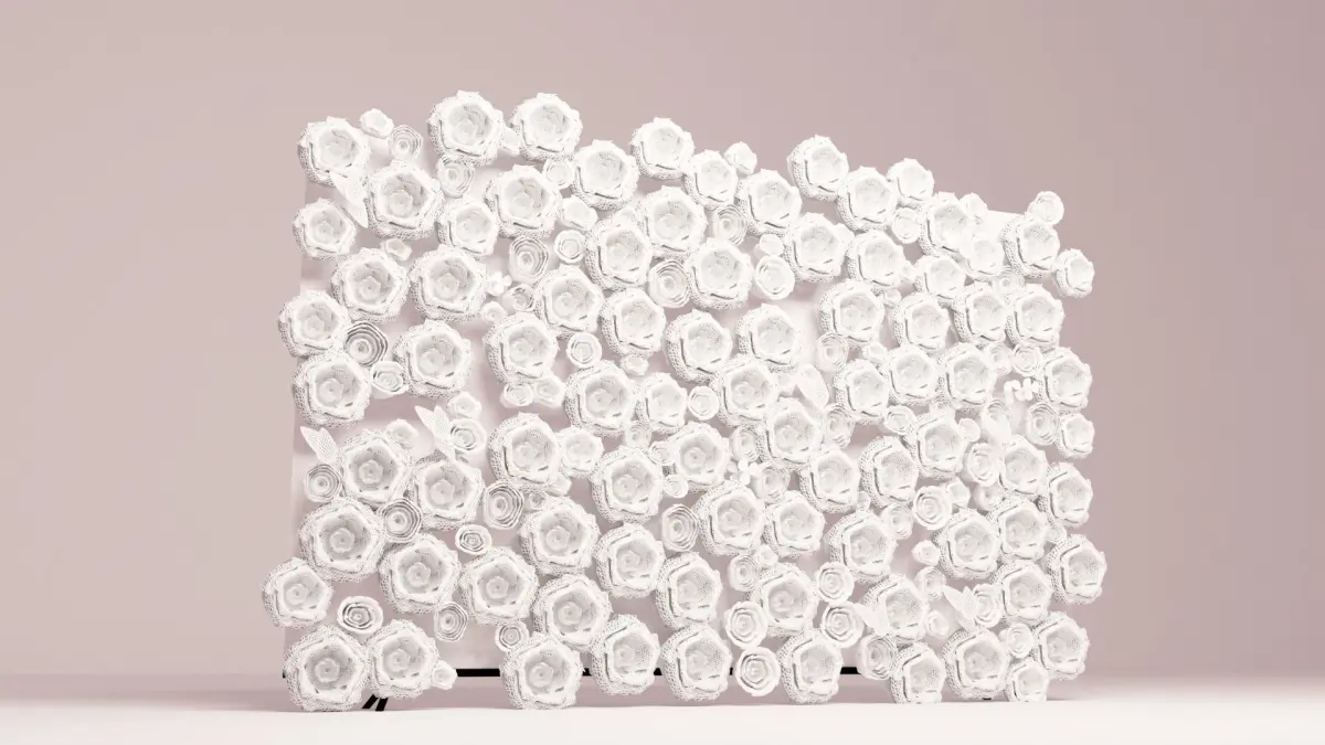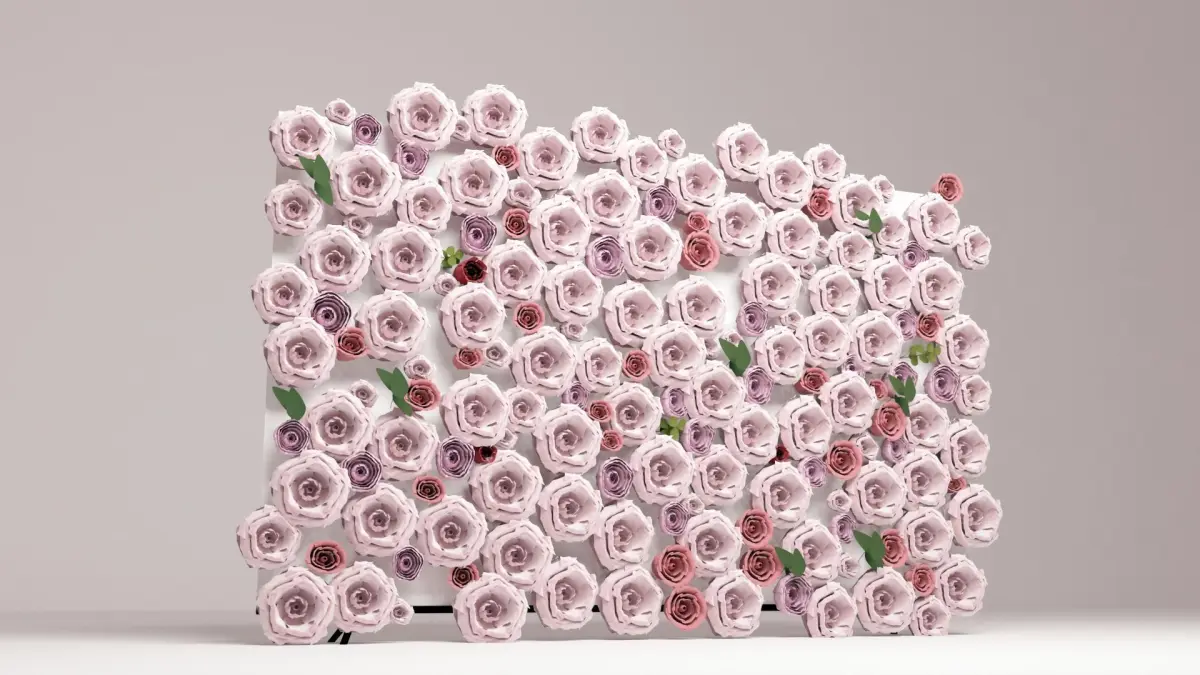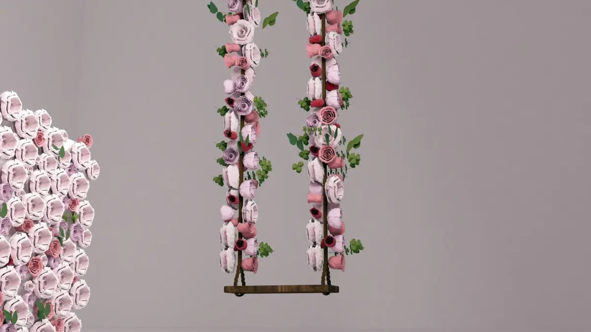 This is a decorative wall and swing with flowers and greenary and roses the wall dimension is 100cm * 100cmflowers and roses eith light dusty pink color themei can make any shape with any dimension according to the orders.