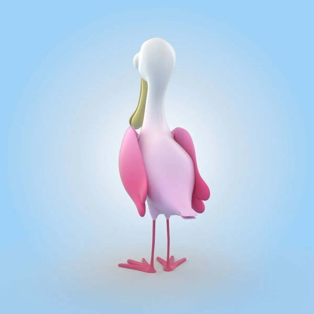 Roseate Spoonbill Bird Cartoon 3D Model.