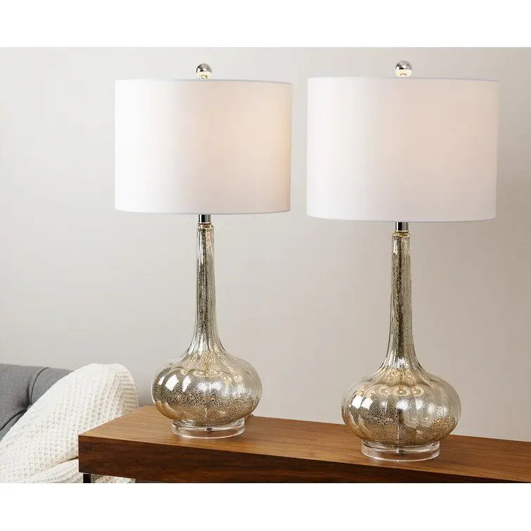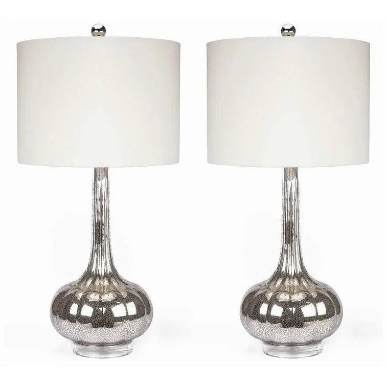 - Whether lighting your way through a late-night novel or illuminating a hand of cards, table lamps are always a useful pick. Take this one for example: Crafted from mercury glass, the base features an eye-catching design awash in a silver finish, adding a glam touch to your arrangement.