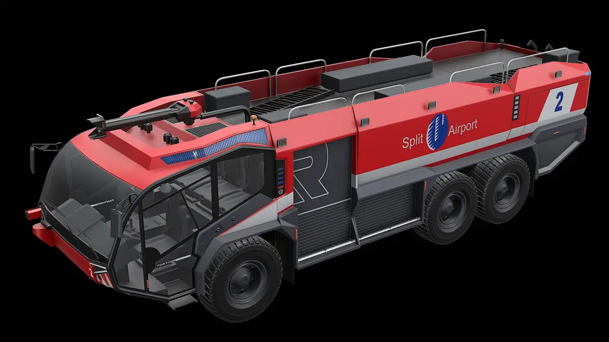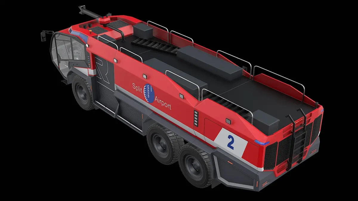 Realistic high detailed Rosenbauer Panther 6x6 Airport Firetruck - Red model with high resolution textures.