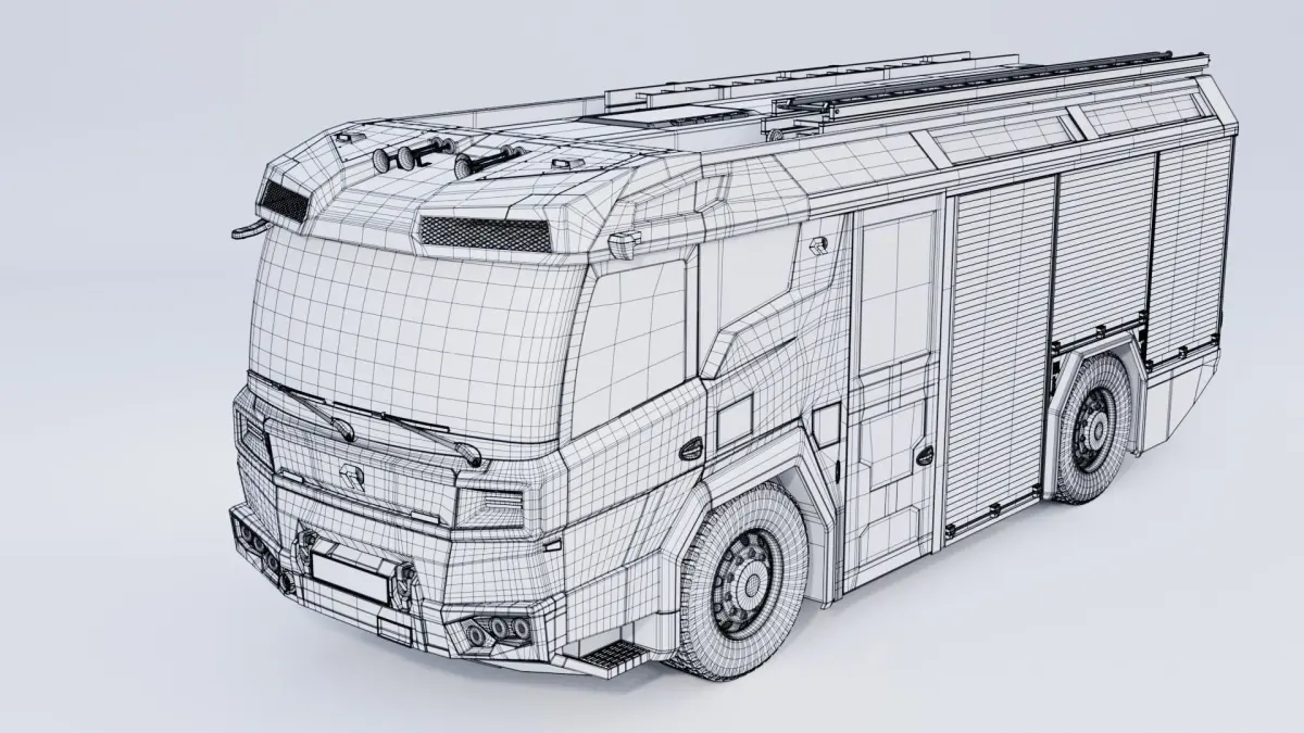 Extremely detailed, rigged model of a Rosenbauer Revolutionary Technology (RT) Hybrid Fire Truck. Original file created in Blender 2.91 for Cycles and Eevee render engines.Rosenbauer RT is a new generation electric-hybrid multipurpose fire truck with 490 HP electric power and 272 HP diesel power as range extender and is the industrialized version of their revolutionary Concept Fire Truck (CFT). Besides the hybrid powertrain it features air suspensions, 4-wheel-steering, electronic side mirrors and large digital displays in the cockpit.
