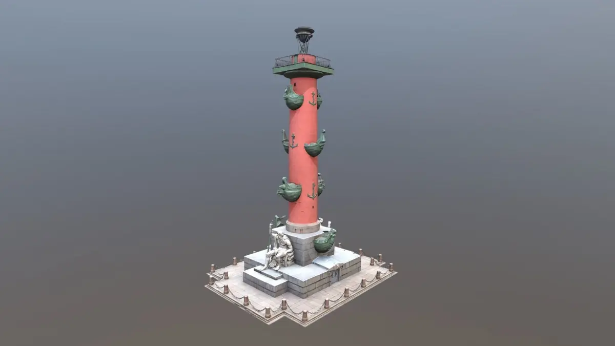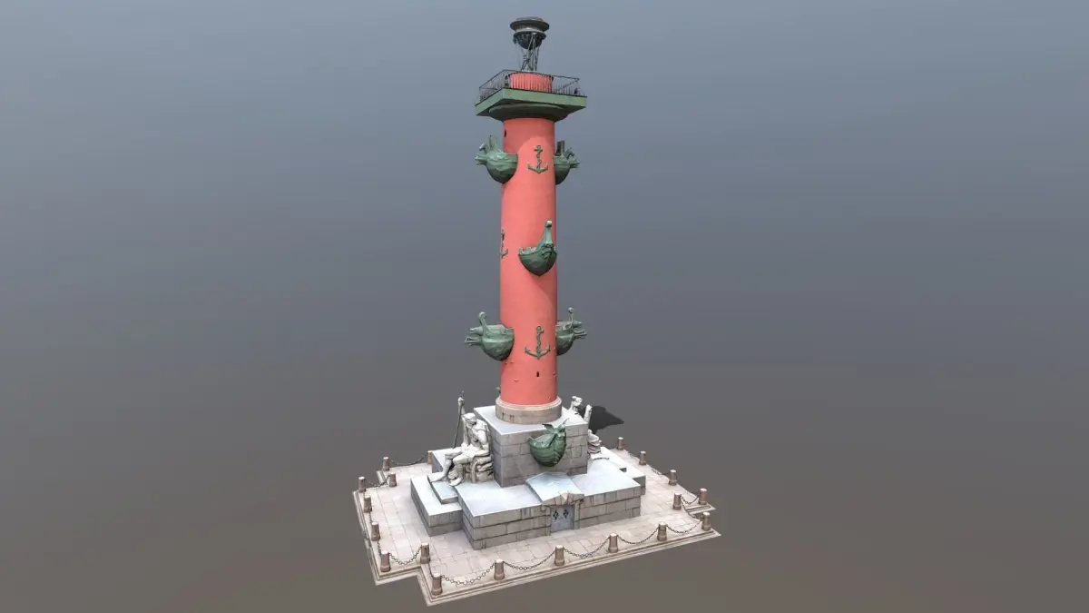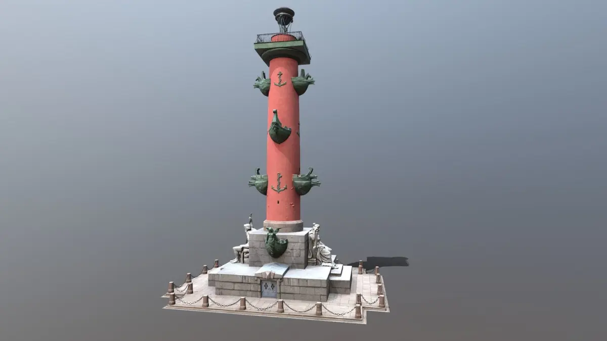 One of two columns standing on the Strelka (spit) of Vasilyevsky Island in St. Petersburg, Russia.