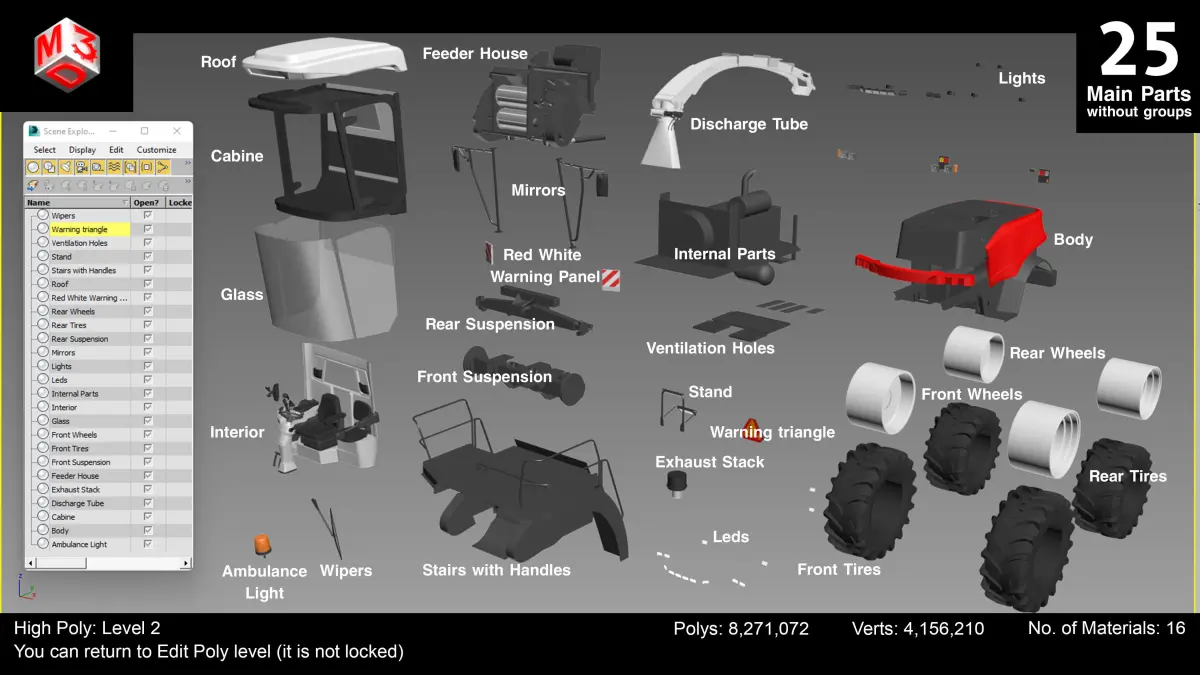 - Turbo Smooth - Level 2: Polys 8229472 - Verts 4134606
