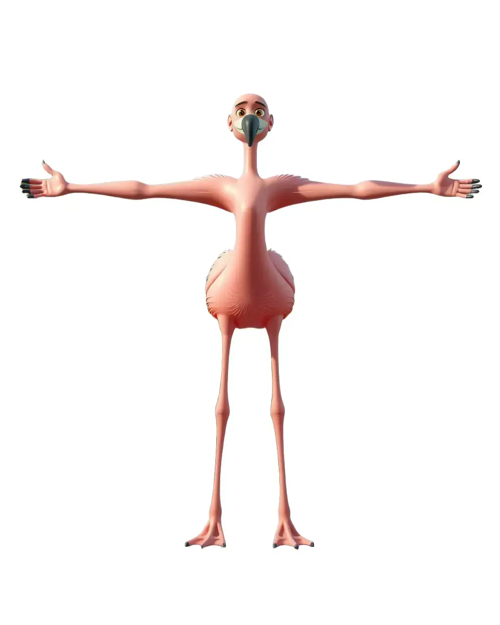 The Rosy Flamingo Character model pack features a charming and stylized flamingo character. Perfect for animated films, games, and educational content, this model brings a playful and eye-catching element to any project. Each model has 3 levels of detail: low-poly(1000 triangles for mobile), middle-poly(10 000 triangles for environment), and high-poly(100 000 triangles), which allows for the use of this model in production rendering(such as 3ds max, Maya, Cinema4d, Blender, Vray/Corona/Cycles and all other), game engines(Unity and Unreal compatible), and interactive presentations, providing a choice of detail based on the LOD System principle. The model's textures are PBR, Diffuse, NormalMap, and reflection/roughness/metallic, which are suitable for any modern rendering engine. All models accurately unwrapped and has no overlapping UV. Enjoy the stunning 4096*4096 textures that ensure high-quality visuals. Please like and leave a comment for the model if you enjoyed it.