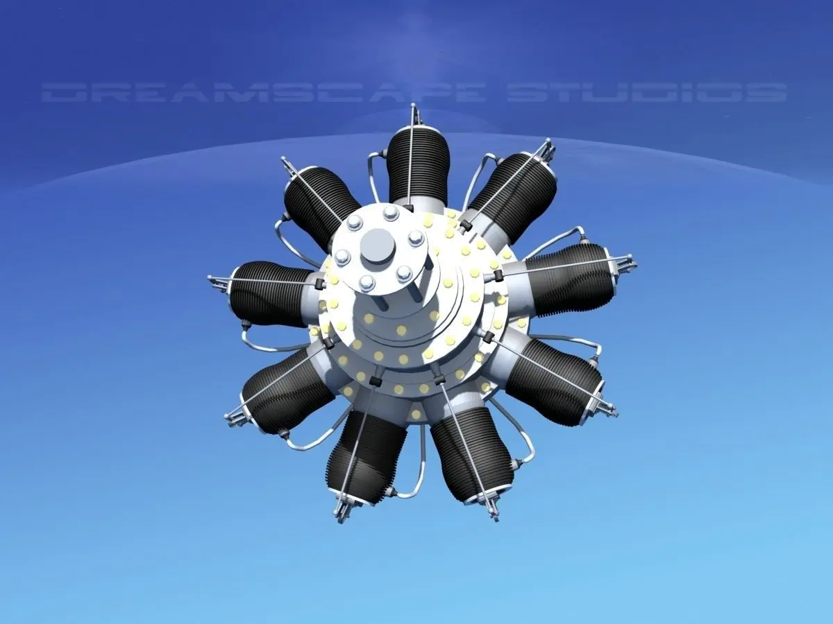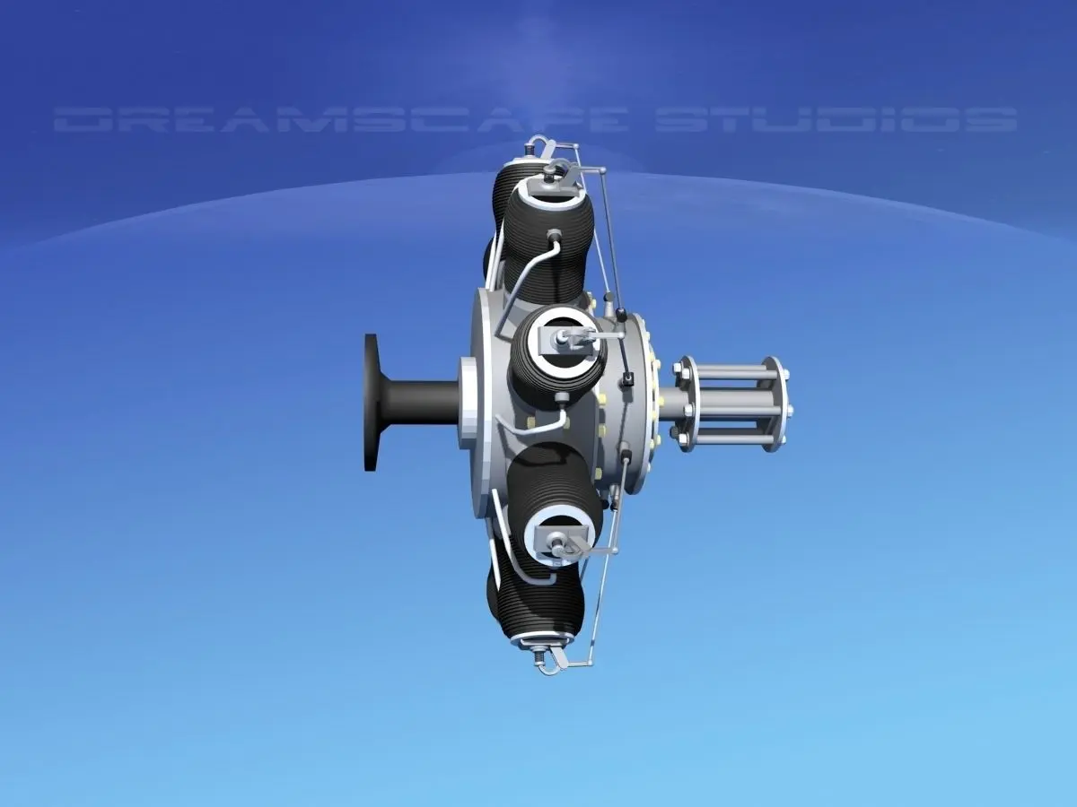 Le Rhone 130 Hp Rotary Engine 3d model is very high poly and detailed. The details in this model are modeled and not a bump or texture map. It has many animateable features including the valve push rods, rockers and the crankcase. It is built near to scale and very realistic. It includes materials and textures and comes in 12 different formats. Le Rhone rotary engine was commonly used in thousands of aircraft built by the French. It was used in the entire later version of the Nieuport 17 in 1916 and early 1917. It is typical of the rotary power plants common during WWI.