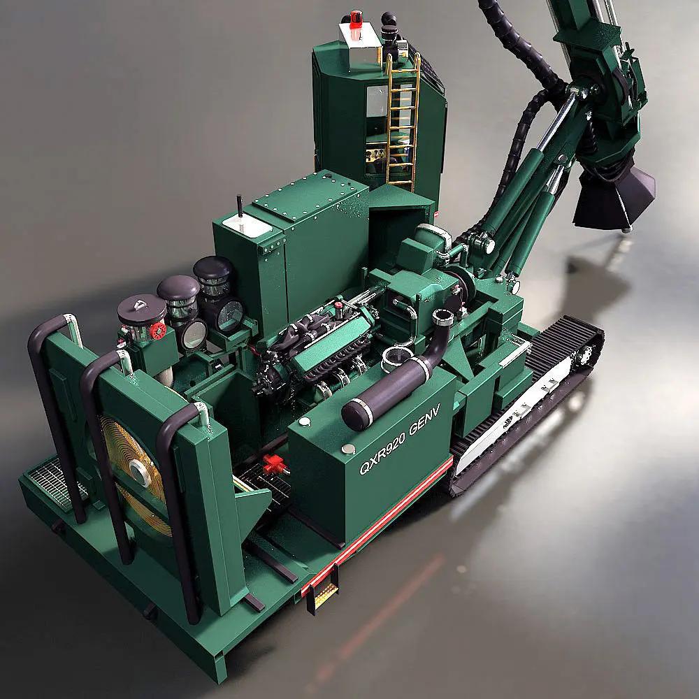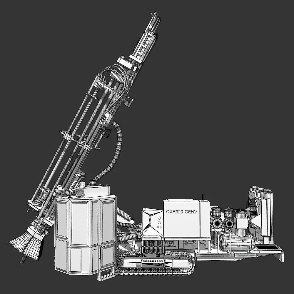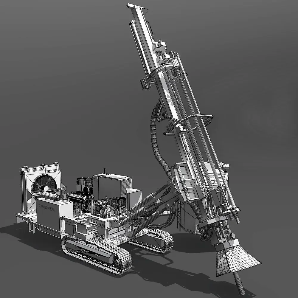 3D model of a rotary blasthole drill modelled from high quality photographic reference and technical documents.