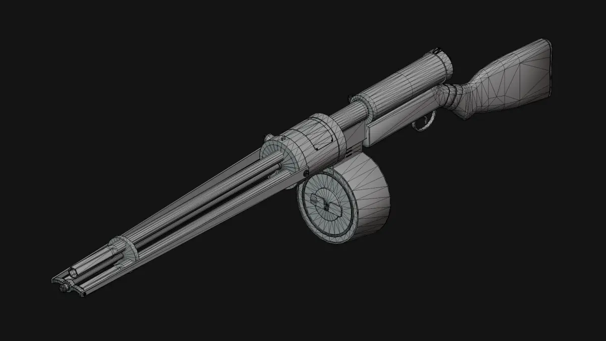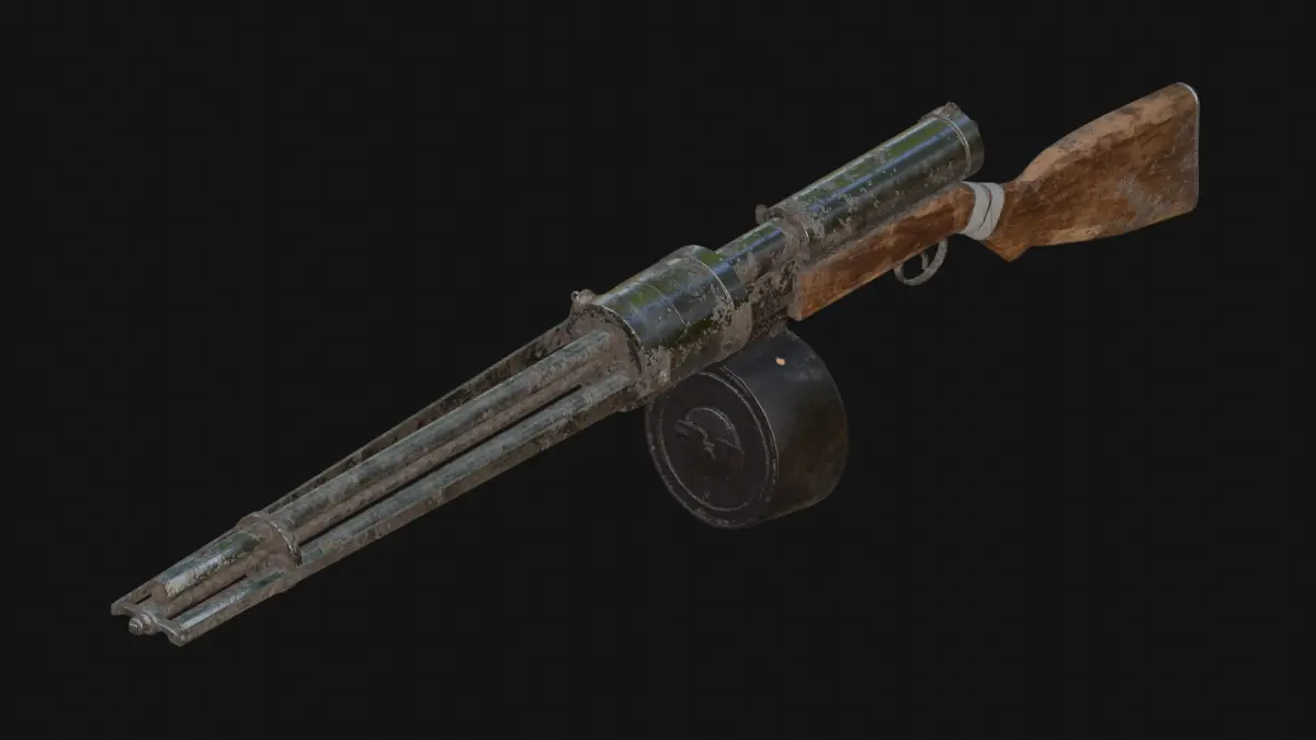 Detailed and game-ready rotary cannon 3D model, perfect for post-apocalyptic, dieselpunk, or sci-fi settings. Featuring a rugged design with weathered metal, aged wood stock, and a drum magazine, this asset includes high-resolution PBR textures and optimized topology for real-time applications. Ideal for use in FPS games, cinematics, or VR projects. Compatible with Unreal Engine, Unity, and standard 3D pipelines.