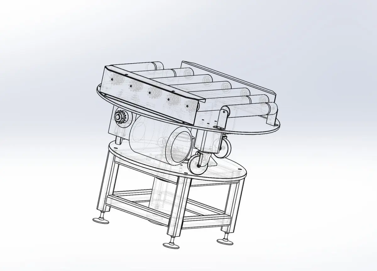 Rotary conveyor, the machine functions for conveyer rotate 180 ° Angle.The rotation Angle is driven by the motor, which is used as the transformation Angle of the transmission line.The structure consists of