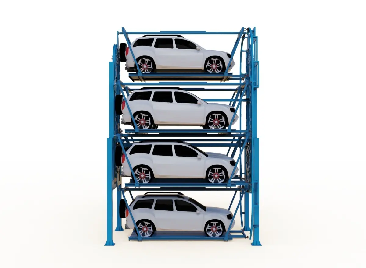 Rotary Parking System 6 SUVCan be used for manufacturing. The scale of the model is 1: 1. This Unique Automated Mechanical Parking is designed to permit up to a maximum of 6 cars, on the surface area required to park 2 cars. When in, the car drives on the platform of the lifter on the ground that will lift the car in the storey of the parking space to complete the in-garage process; Conversely for out of the garage, meaning the horizontal side-sliding driving machine will send the parking space to the lifter on the ground that place the car on the ground.