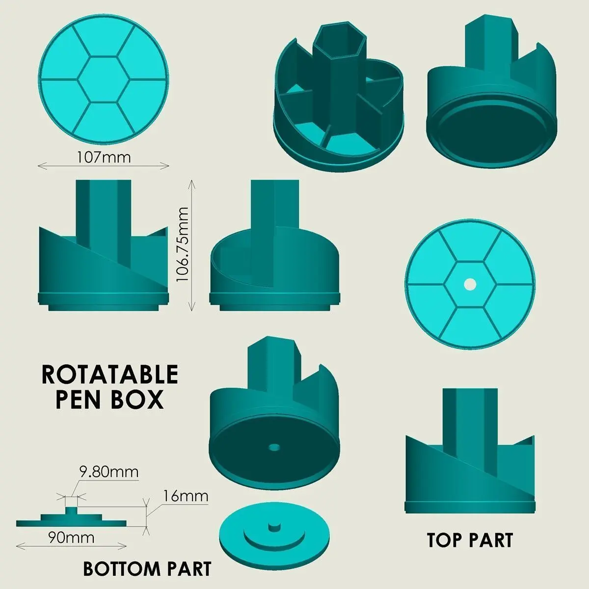 3D printable Rotatable Pen Box model with separate print files for the Top Part and the Bottom Part.