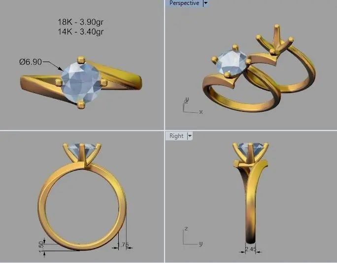 Description: 14K - 3.40 gr 18K - 3.90 gr **The ring is suitable for a round stone with a diameter of 6.90mm,and a princess-shaped stone measuring 4.80X4.80 mm