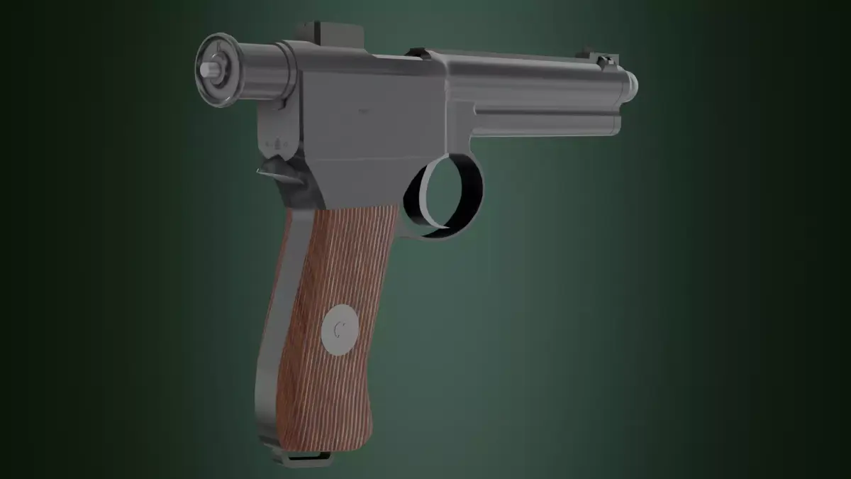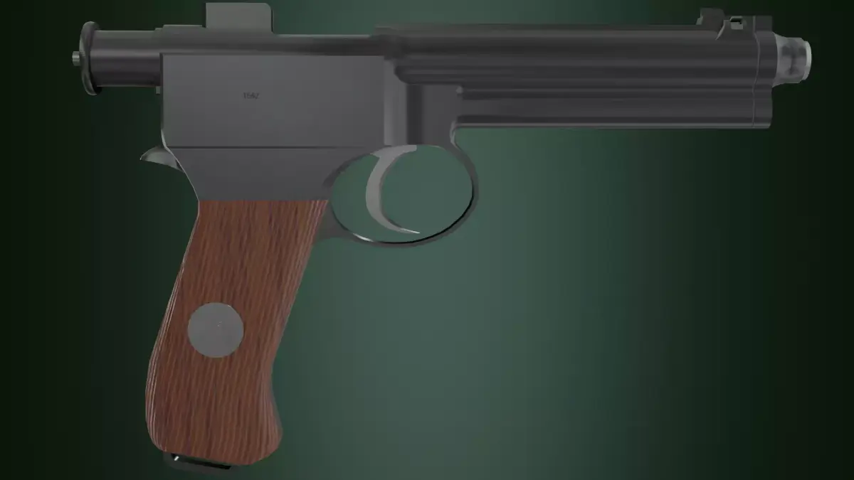 An 8mm pistol produced in Austria-Hungary (officially the Roth-Krnka M.7), chambered for the 8×19mm Roth cartridge, was in service World Wars I and II. It features quasi-double action trigger mechanism, and rotating barrel locking system. Its effective range is 75 meters. It has a 10-round magazine. It was produced from 1907 to 1914.
