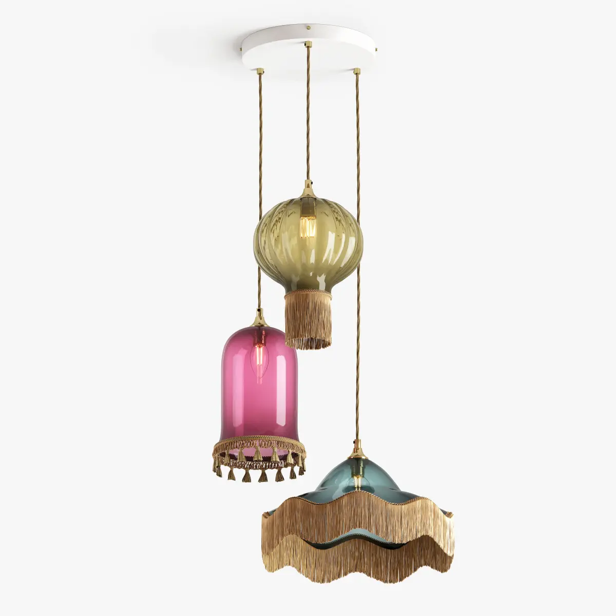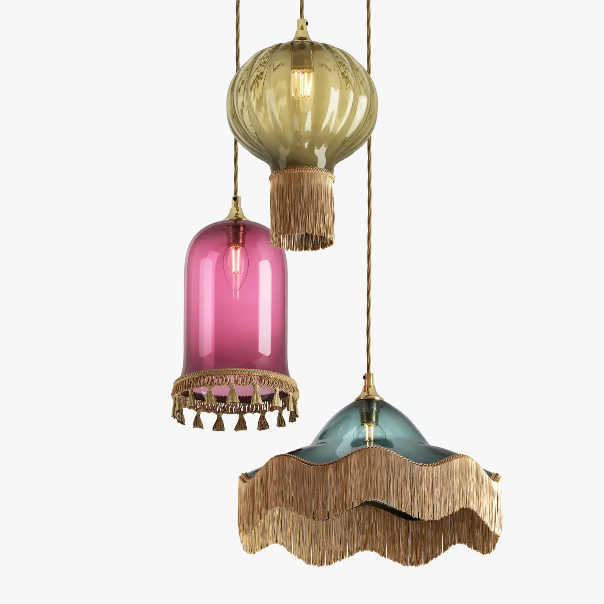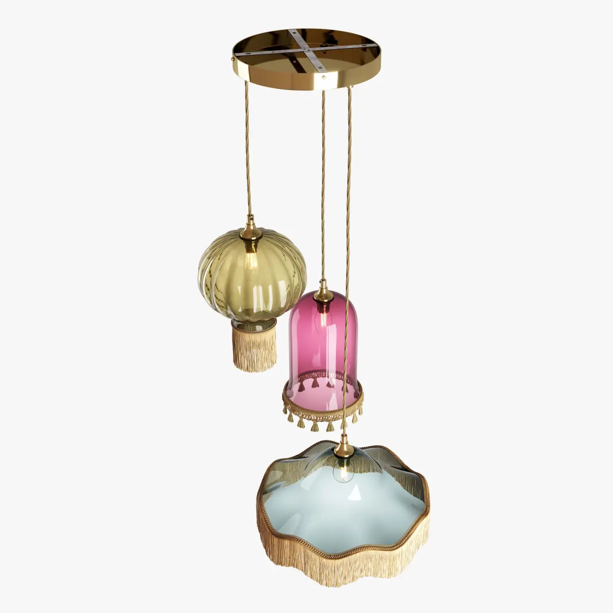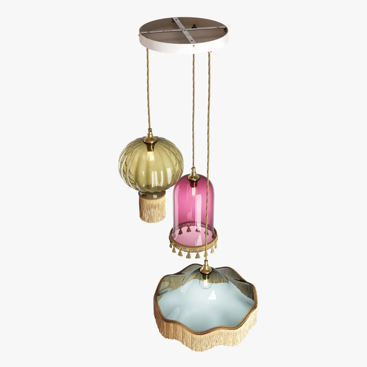 Rothschild BickersTassel-Vintage-Opulent clusters.Tassel-Vintage-Opulent chandeliers and multiple ceiling plates, rosettes, hanging rings. Materials of glass, wires, metal.