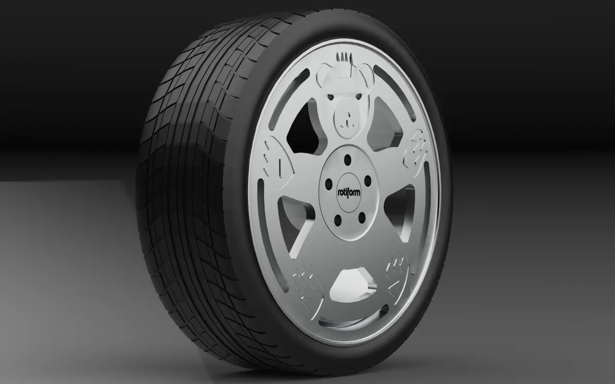 3D Model of Rotiform Teddy Alloy Wheels, designed by Ken Block for his daughter. Made using Solidworks. Included formats are .fbx,.obj and .stl. Shown images were rendered using Keyshot.