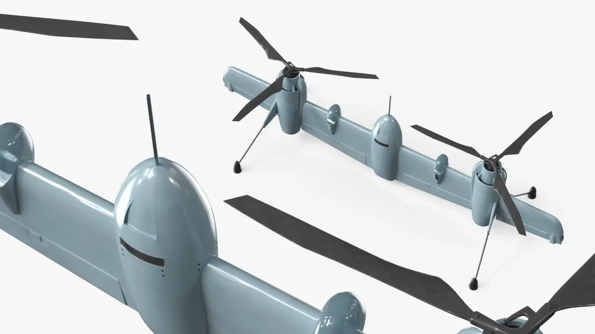 This model showcases a drone with a sleek, aerodynamic design equipped with dual propellers for vertical lift. The drone is engineered to provide excellent stability and maneuverability, making it ideal for reconnaissance and surveillance missions. Its durable construction ensures reliability in diverse environmental conditions.