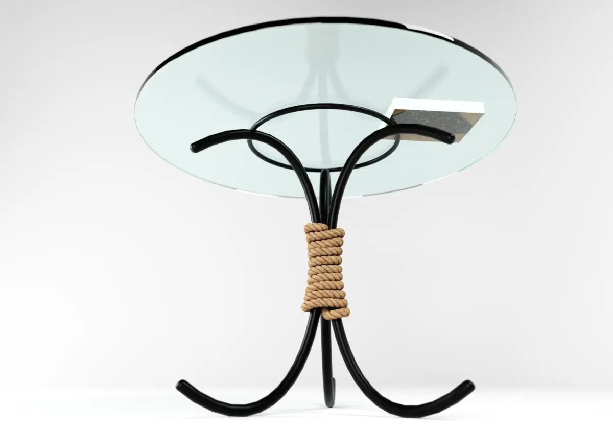 The Rotrip coffee table is a custom Modern design coffee table that is multipurpose, meaning can be used in modern aesthetic, as well as any other form of design to give a pleasing environment. Sisal rope infused with metal and glass gives it the modern yet natural feel to you scene. Yes a change in the table top material could give a striking appearance. Ebonized wood is recommended.