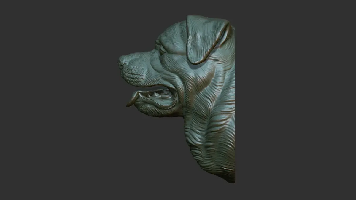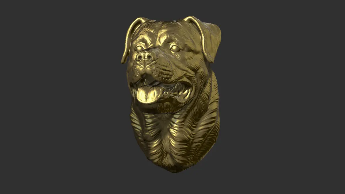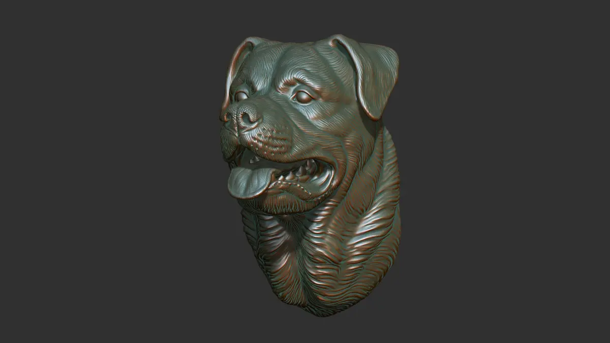 500K STL, OBJ triangulated mesh, Rottweiler gloomy bust on the wall