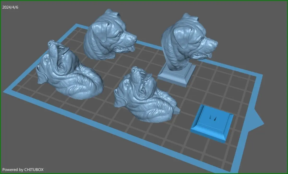 500K STL, OBJ triangulated mesh, Rottweiler gloomy bust on the base merged