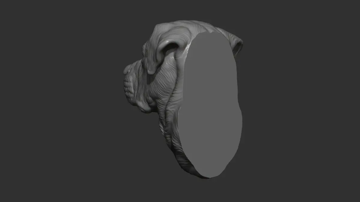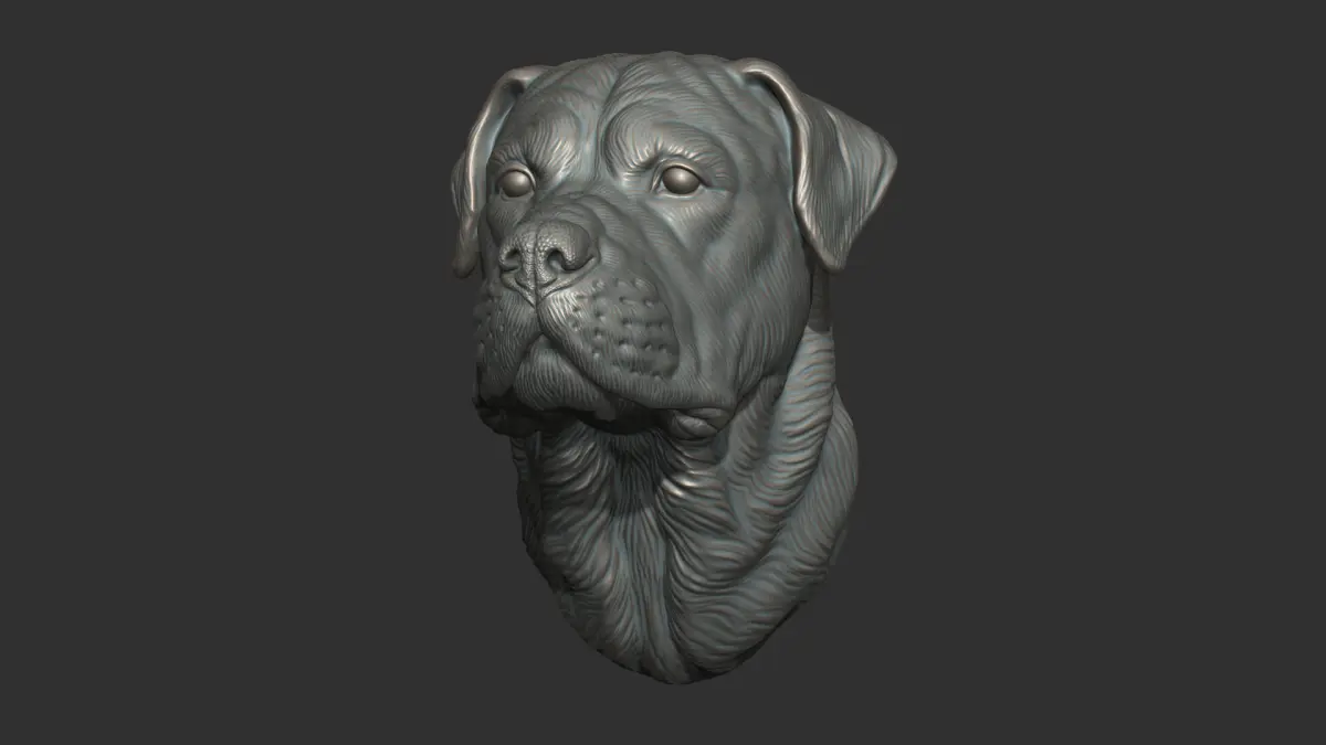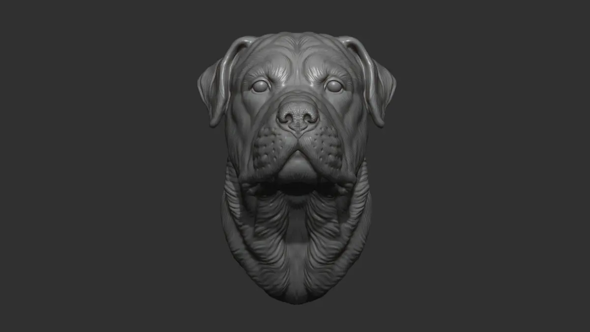 500K STL, OBJ triangulated mesh, Rottweiler head dog is cut off from the bottom