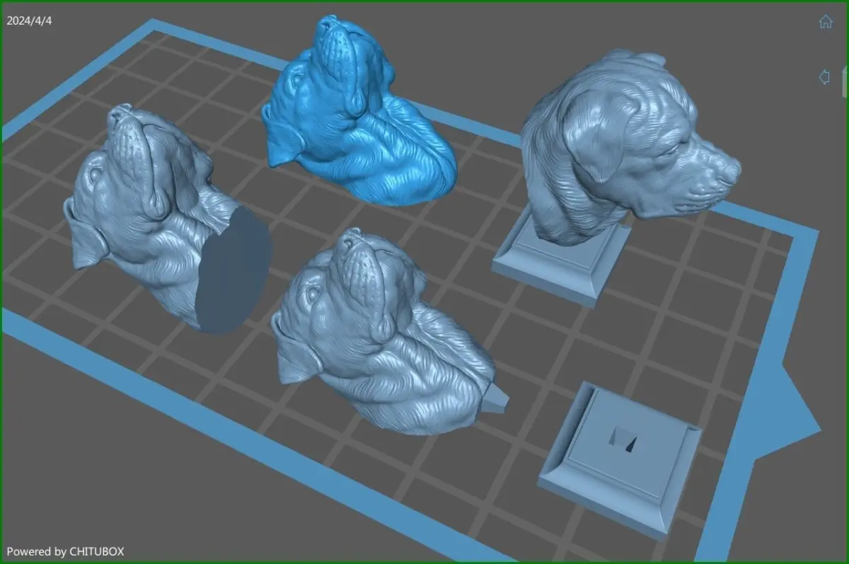 520K STL, OBJ triangulated mesh, Rottweiler head dog on the base merged