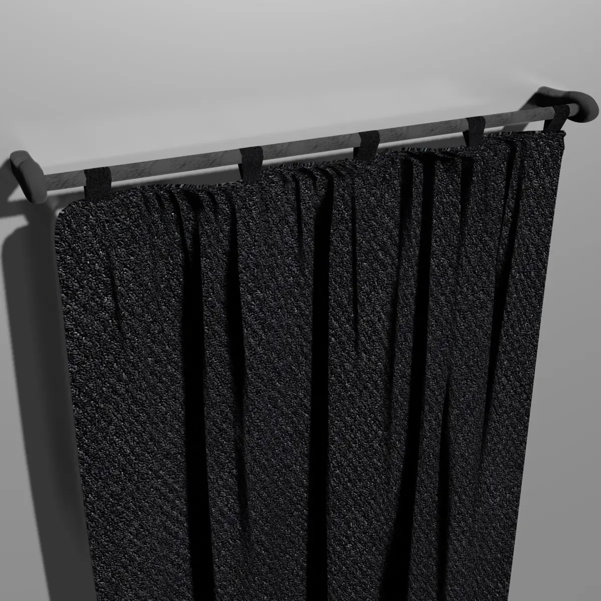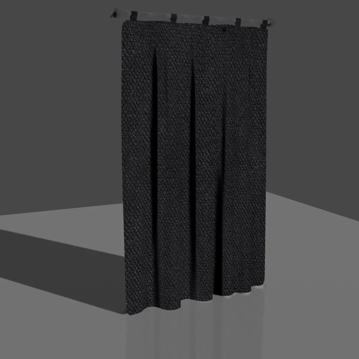 Just a simple curtain made of a rough fabric with thick threads. It's high enough poly for some quick interior renders, and low enough poly for some games. You might want to tweak the textures a bit.