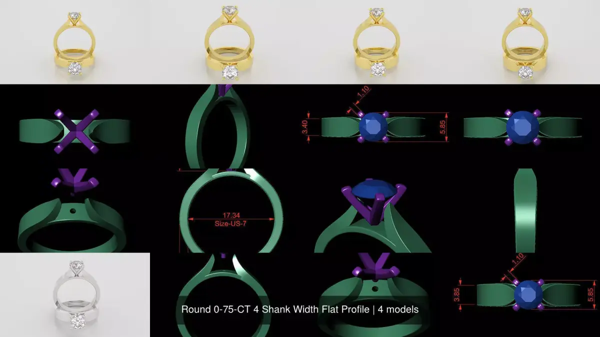 Models Details. Ring Size US-7 (17.34mm inner diameter) in All. Shank Width (2.4mm)-Weight (5.03 Grams 18k Gold). Shank Width (2.60mm)-Weight (5.58 Grams 18k Gold). Shank Width (2.90mm)-Weight (6.12 Grams 18k Gold). Shank Width (3.20mm)-Weight (7.01 Grams 18k Gold). Stone Size (5.85mm x 5.85mm) in All. Contact for any custom designs.