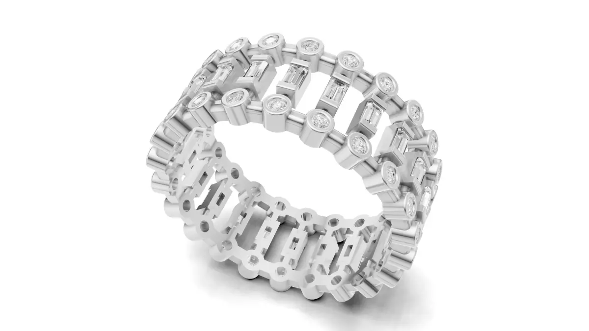 Round and Baguette Diamond Eternity Band 3D print model